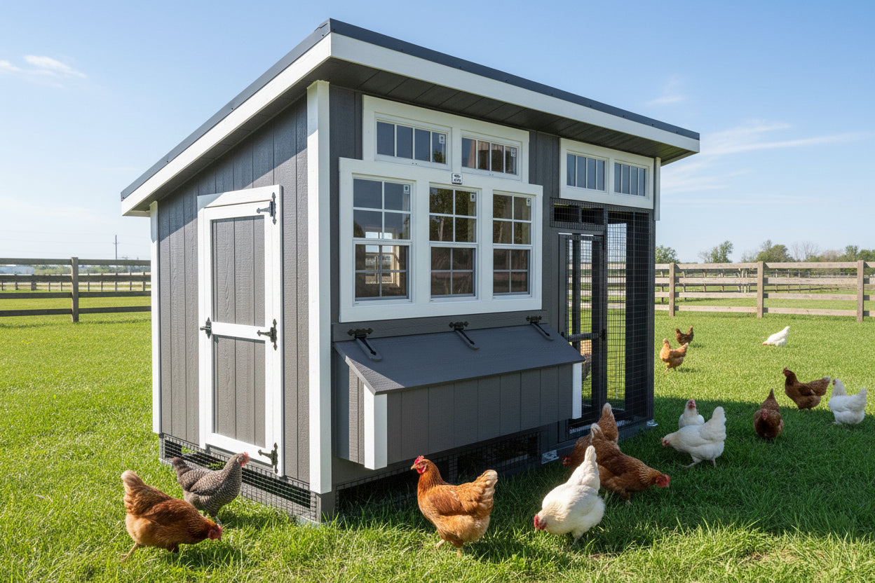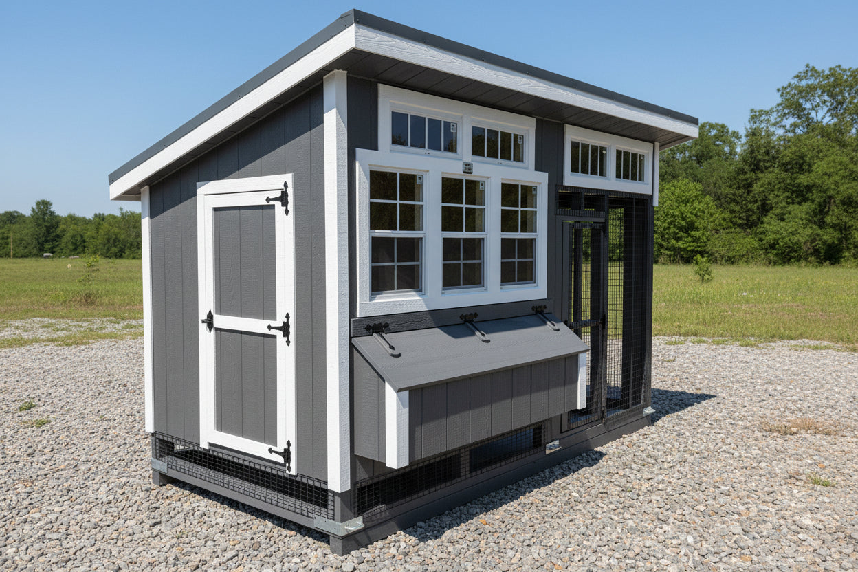 ~ 06X12 Dakota Storage Skillion Combination Coop Wood Panel ~ Building Color - Peppercorn (SW 7674) Super Paint ~ Trim Color - *FASCIA, CORNER, WINDOW & DOOR TRIM* - Super White (SW 6995) ~ Steel Roof - Charcoal LC