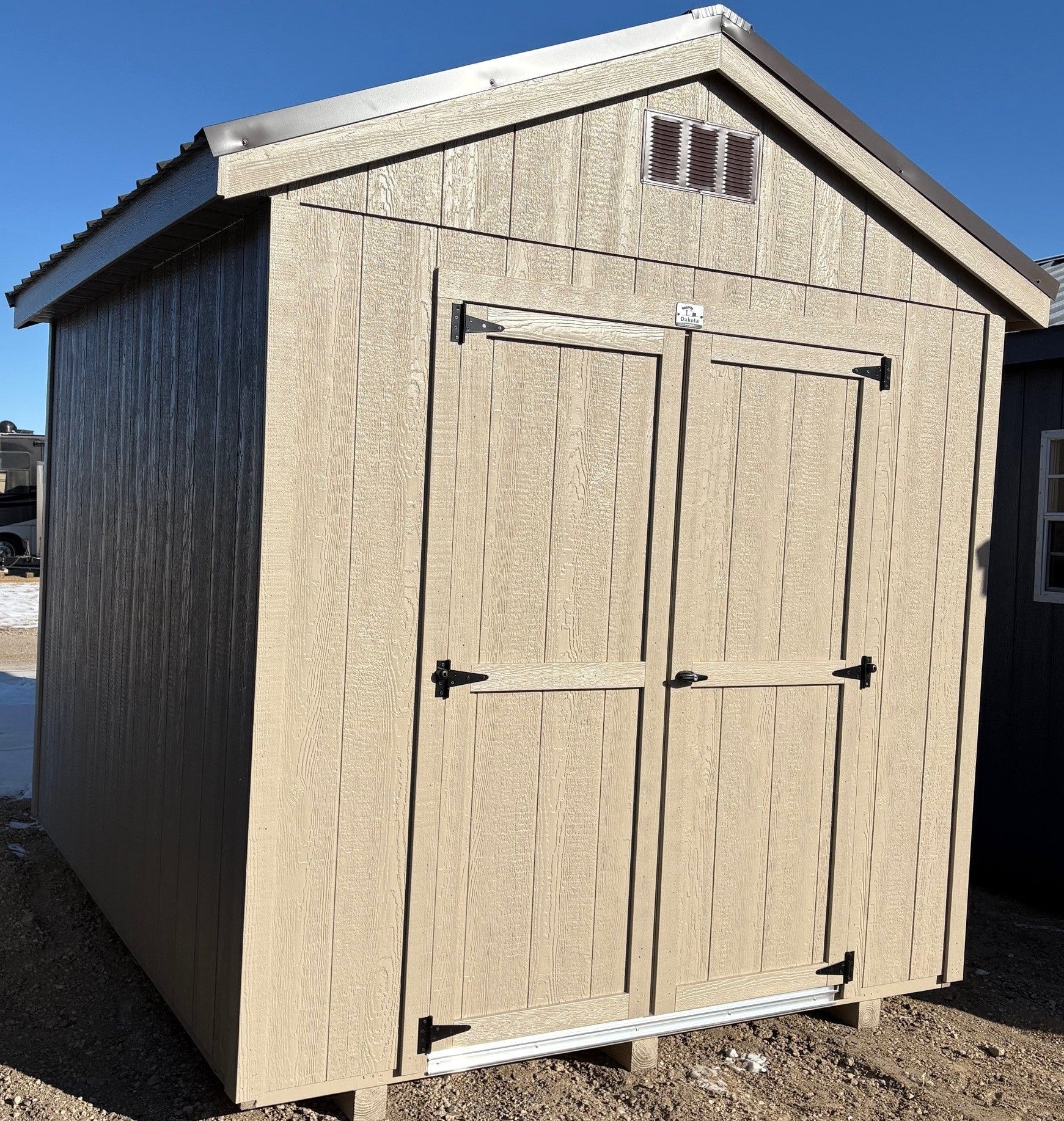 ~ 08X10 Utility Ranch Wood Panel Shed~ Building Color - Taupe Tone (SW 7633) Super Paint~ Steel Roof - Burnished Slate LC