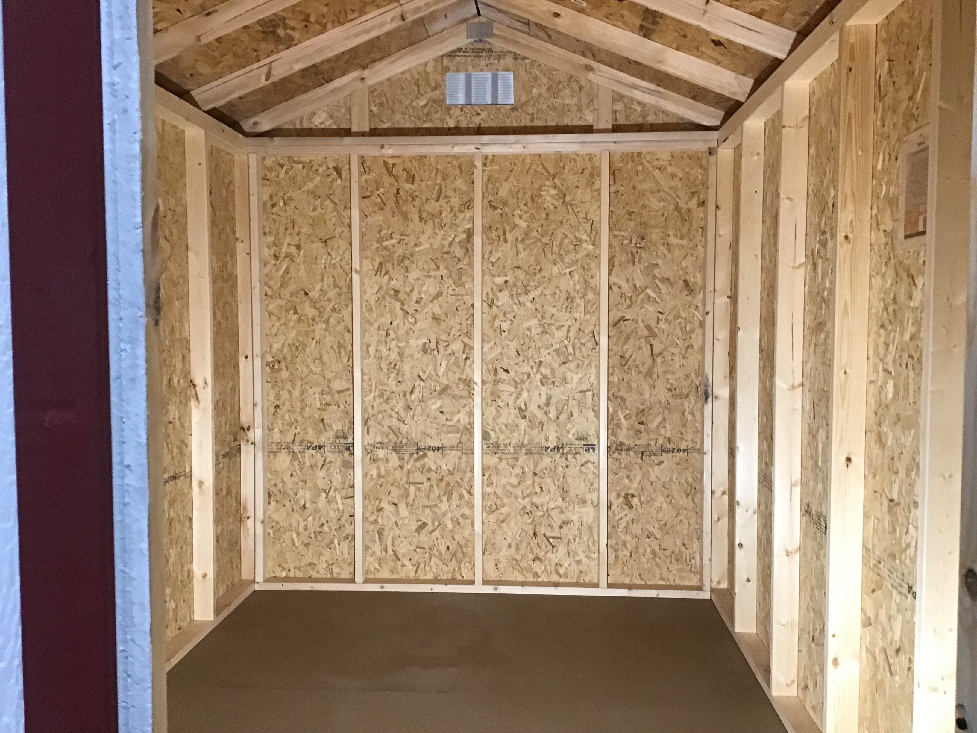 ~ 08X12 Utility Ranch Wood Panel Shed ~ Building Color - Super White (SW 6995) ~ Trim Color - *FASCIA, CORNER, WINDOW & DOOR TRIM* - Crabby Apple (SW 7592) Super Paint ~ Steel Roof - Patriot Red LC