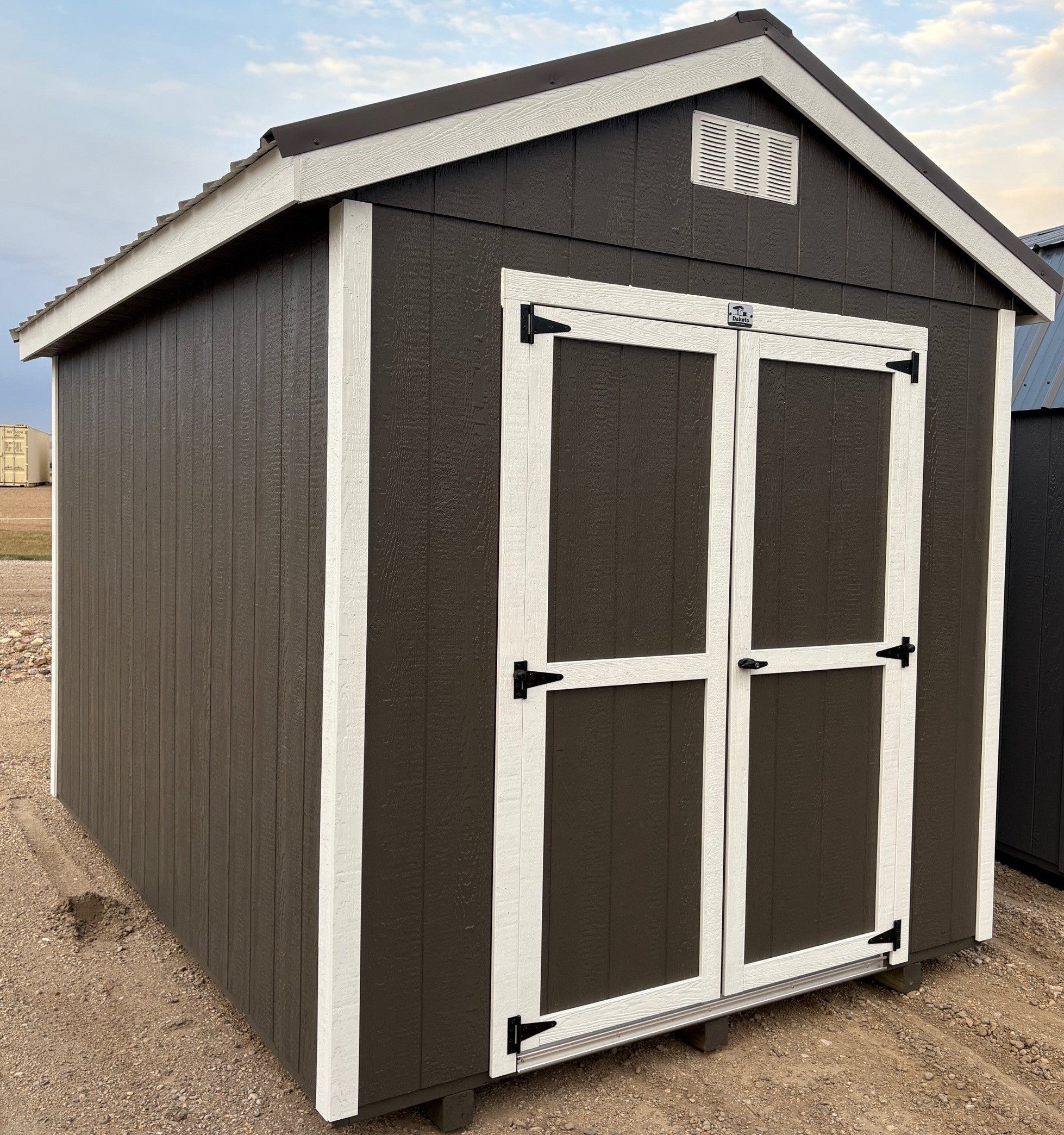~ 08X12 Utility Ranch Wood Panel Shed~ Building Color - Urbane Bronze (SW 7048)~ Trim Color - *FASCIA, CORNER, & DOOR TRIM* - Super White (SW 6995)~ Steel Roof - Burnished Slate LC
