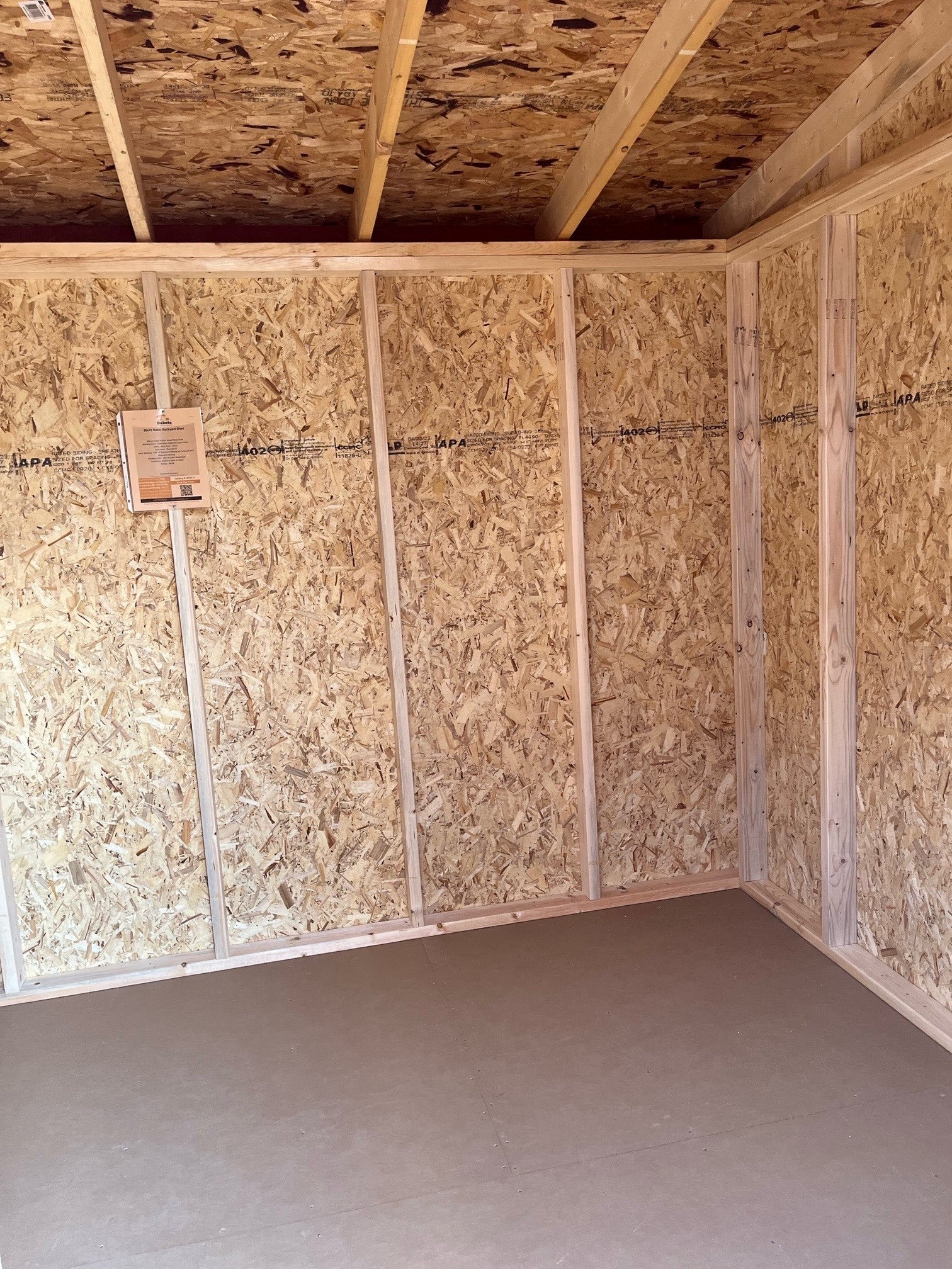 08X12 Utility Skillion Wood Panel ShedBuilding Color - Fired Brick (SW6335) Super PaintVents - 8x16 Vent - WhiteSteel Roof - Charcoal CSFloor Sheeting - 5/8" LP Prostruct Flooring w/ Textured Skid-Resistant Flooring Standard Door - 64in Double Wood Door TreadPlate Added to Door or DoorsRamps - NONE