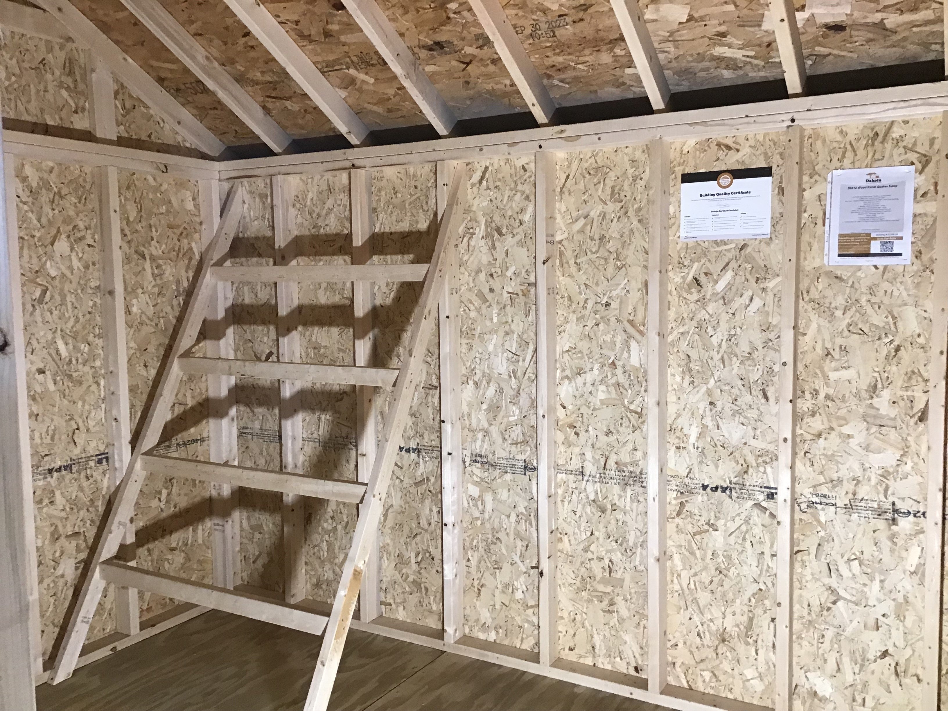 8X12 With Wood Panel Siding ** Roofline - Quaker Gable** Building Color - Summit Gray (SW 7669) Trim Color - *FASCIA, CORNER, WINDOW & DOOR TRIM* - Super White (SW 6995) Vents - 8x16 Vent - White Steel Roof - Charcoal LC 1. Window - 18x27 Vertical Slider - White 2 Extra Window- 18x27 Vertical Slider - White Floors - 16" On Center With 2x4 Pressure Treated Floor Joist Floor Sheeting - 3/4" Pressure Treated Plywood (Straight Edge) Standard Door - 36in Single Wood Door Ramps - NONE ***6 Box Outside Mounted Nest Box*** 1. **Chicken Door 12" Wide X 14" High** 1. Chicken Roost 48" Wide X 72" High, 4 Rungs; Bottom of Roost will be 4' from Wall