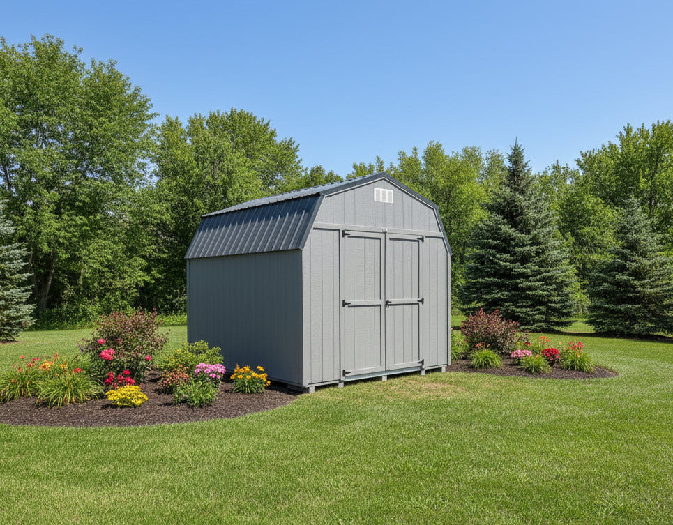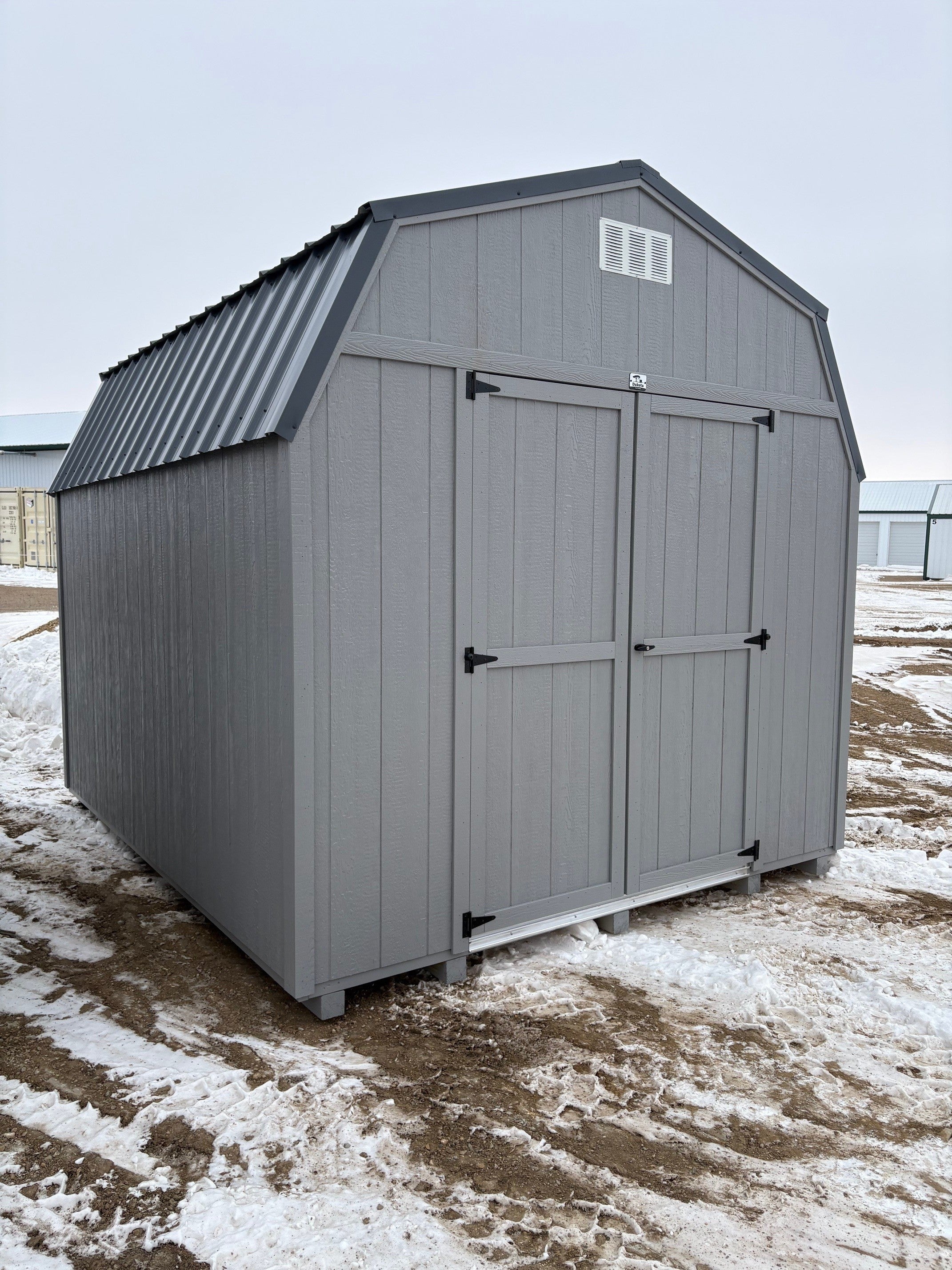 ~ 10X12 Utility High Barn Wood Panel Shed~ Building Color - Summit Gray (SW 7669)~ Steel Roof - Charcoal LC