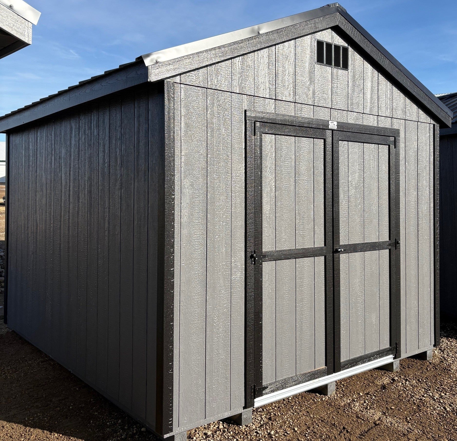 ~ 10X12 Utility Ranch Wood Panel Shed ~ Building Color - Peppercorn (SW 7674) Super Paint ~ Trim Color - *FASCIA, CORNER, & DOOR TRIM* - Tricorn Black (SW6258) Super Paint ~ Steel Roof - Black LC