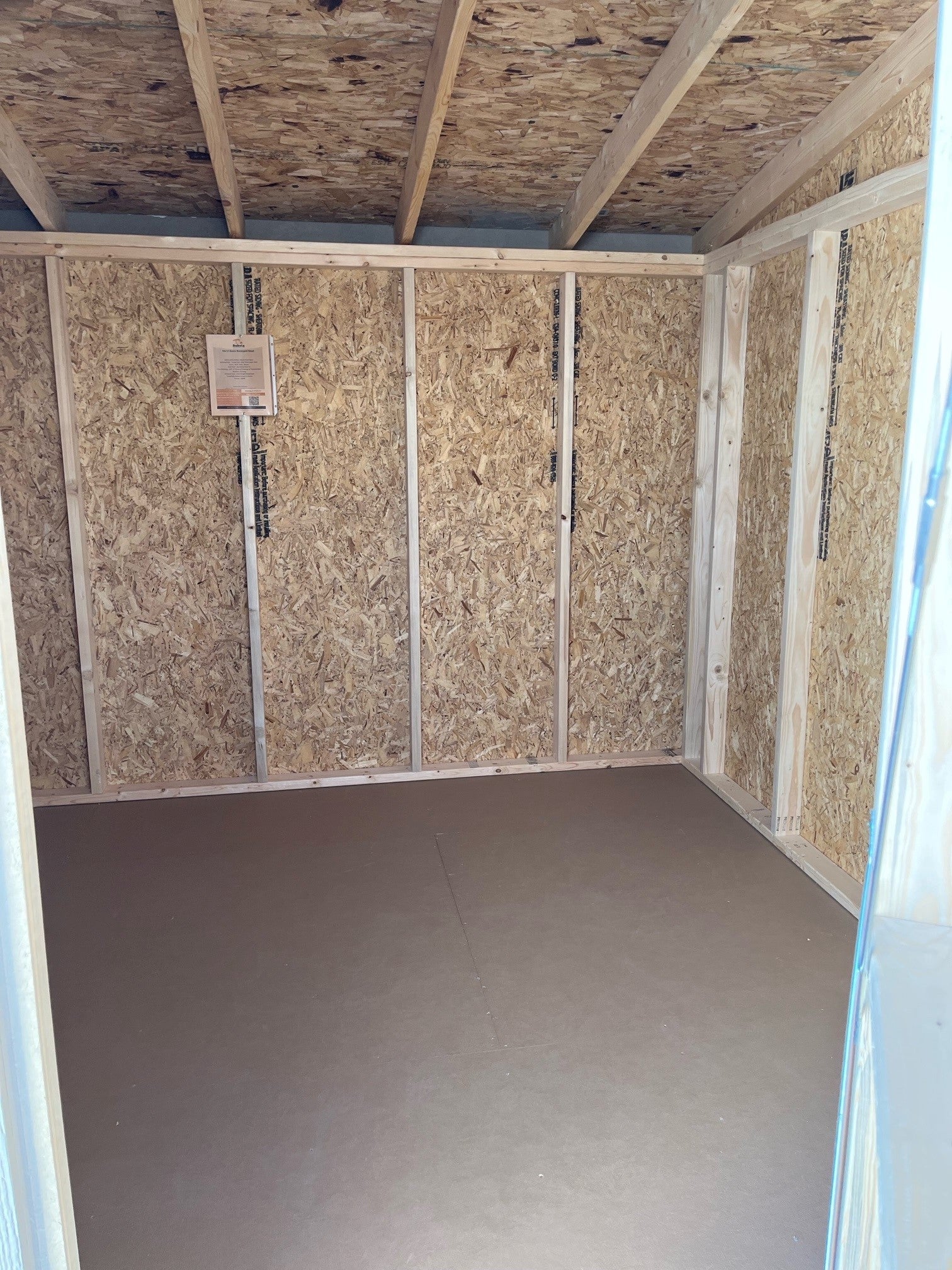 10X12 Utility Skillion Wood Panel Shed Building Color - Taupe Tone (SW 7633) Super Paint Vents - 8x16 Vent - Brown Steel Roof - Burnished Slate CS Floor Sheeting - 5/8" LP Prostruct Flooring w/ Textured Skid-Resistant Flooring Standard Door - 64in Double Wood Door TreadPlate Added to Door or Doors Ramps - NONE