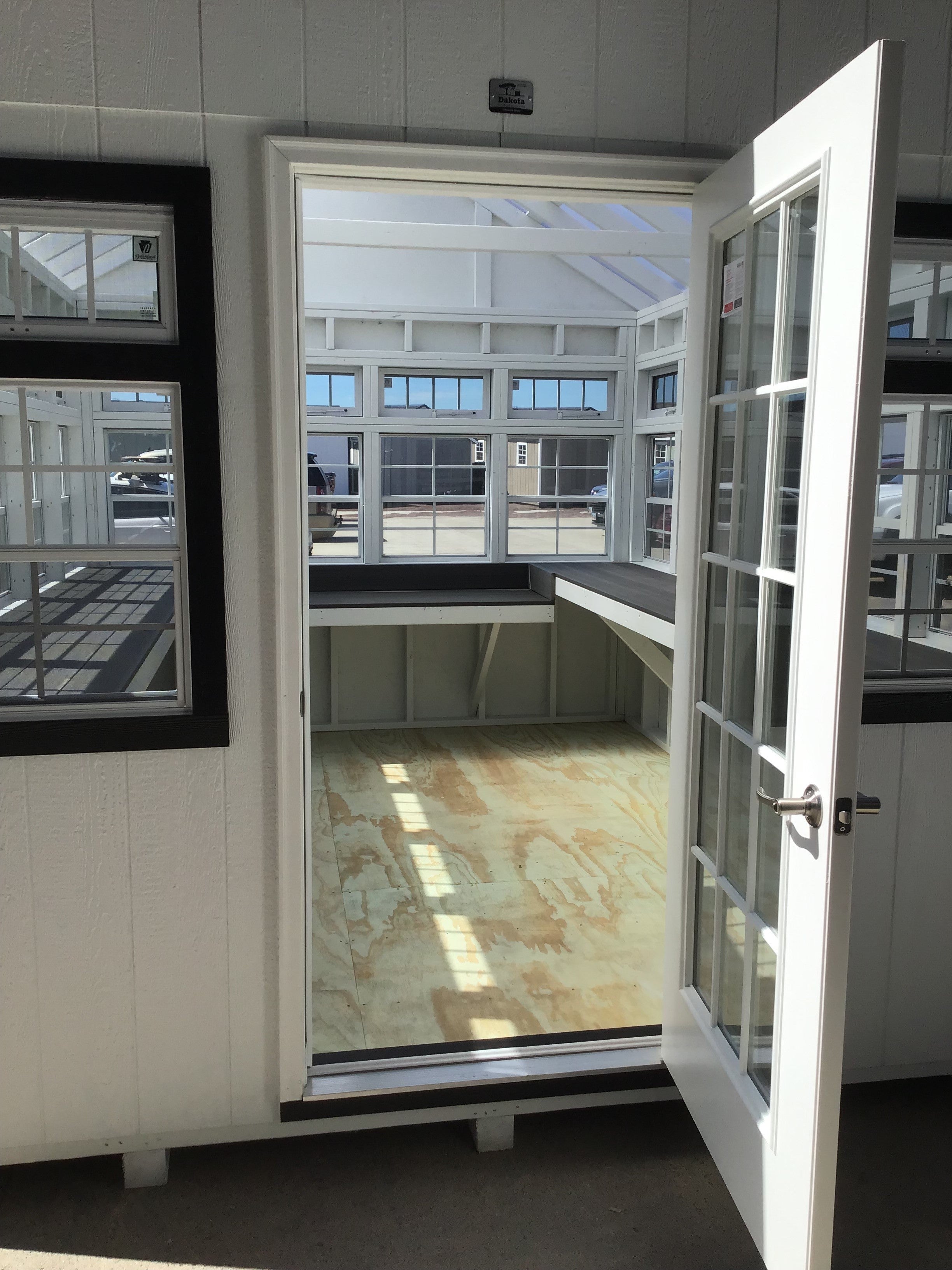 ~ 10X12 Green House Galley With Wood Panel Siding ** Roofline - 7/12 Classic Gable** ~ Building Color - Super White (SW 6995) ~ Trim Color - *FASCIA, CORNER, WINDOW & DOOR TRIM* - Tricorn Black (SW6258) Super Paint ~ Inside of Greenhouse Will be Painted White. ~ 5/8in Thick Softlite Twinwall Polycarbonate Panels; Roof Trim Color - Black