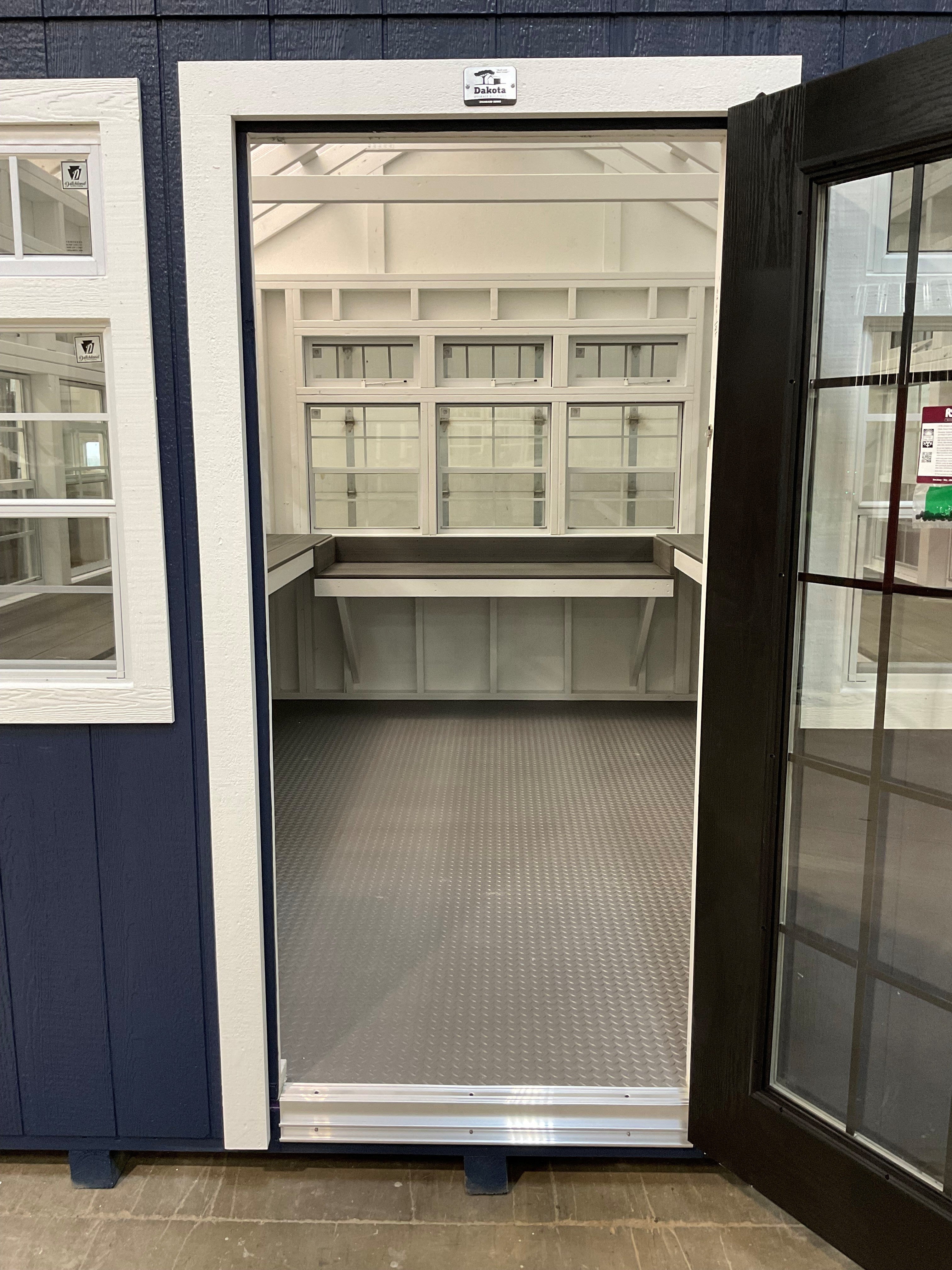 ~ 10X12 Green House Galley With Wood Panel Siding ** Roofline - 7/12 Classic Gable** ~ Building Color - Naval (SW6244) ~ Trim Color - *FASCIA, CORNER, WINDOW & DOOR TRIM* - Super White (SW 6995) ~ Inside of Greenhouse Will be Painted White. ~ 5/8in Thick Softlite Twinwall Polycarbonate Panels; Roof Trim Color - Pure White