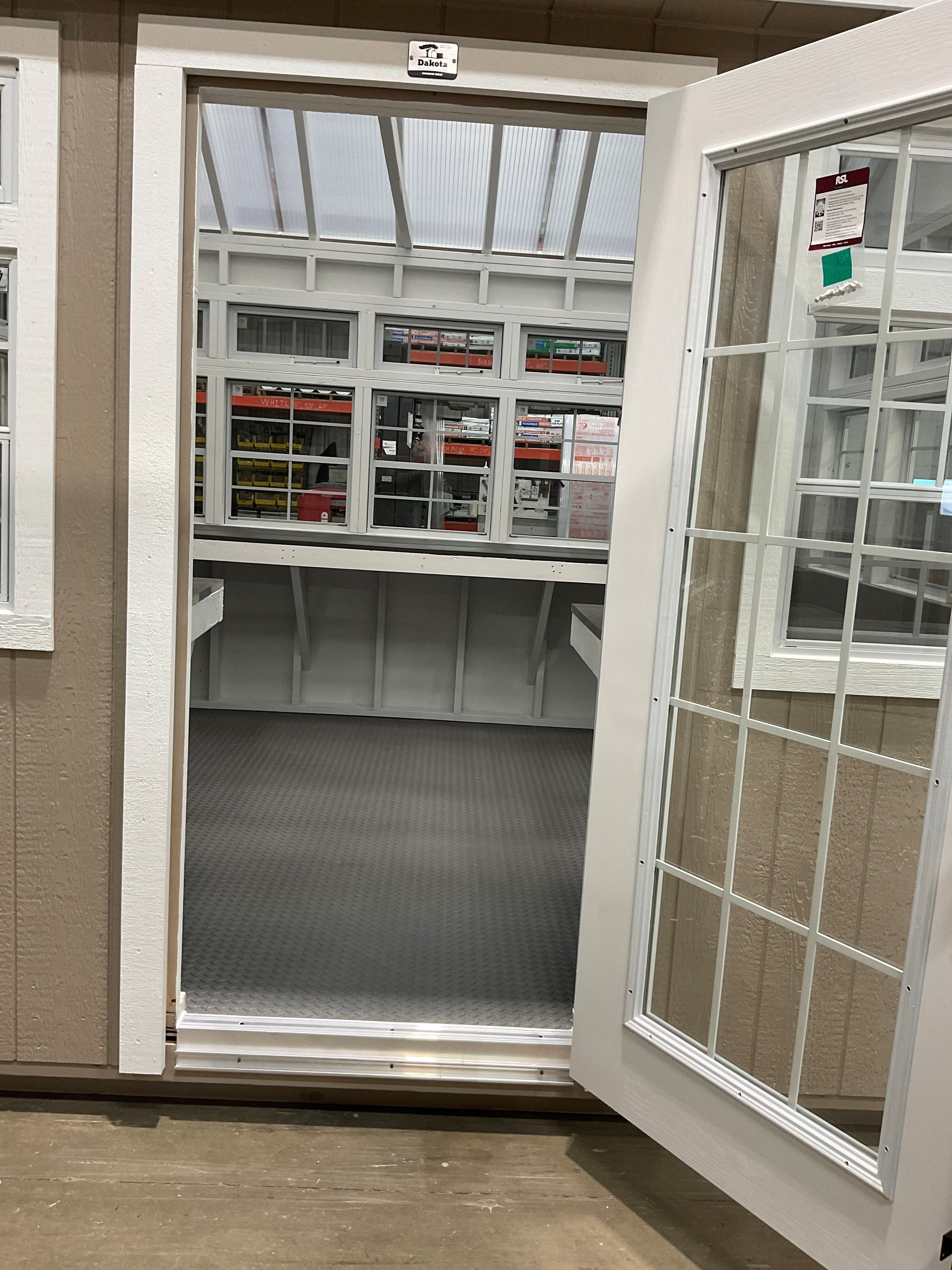 ~ 10X12 Green House Wrap Around With Wood Panel Siding ** Roofline - 7/12 Classic Gable** ~ Building Color - Taupe Tone (SW 7633) Super Paint ~ Trim Color - *FASCIA, CORNER, WINDOW & DOOR TRIM* - Super White (SW 6995) ~ Inside of Greenhouse Will be Painted White. ~ 5/8in Thick Softlite Twinwall Polycarbonate Panels; Roof Trim Color - Burnished Slate