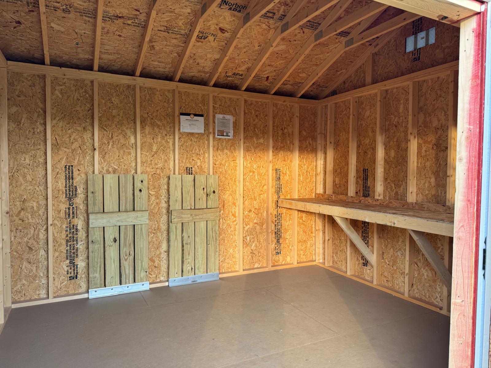 10X12 Everyday Backyard Shed Package With Wood Panel Siding ** Roofline - 5/12 Ranch Gable** Building Color - Crabby Apple (SW 7592) Super Paint Trim Color - *FASCIA, CORNER, WINDOW & DOOR TRIM* - Super White (SW 6995) Drip Edge - White Vents - 8x16 Vent - White Shingles - CertainTeed (Granite Gray) (NorthGate) 1. Window - 18x27 Vertical Slider - White Floors - 16" On Center Floor Sheeting - 3/4" LP Prostruct Flooring w/ Textured Skid-Resistant Flooring Standard Door - 64in Double Wood Door 1. 4ft IMR Adjustable Pressure Treated Wooden Ramp For Double Door (2 - 2ft X 4ft Sections)