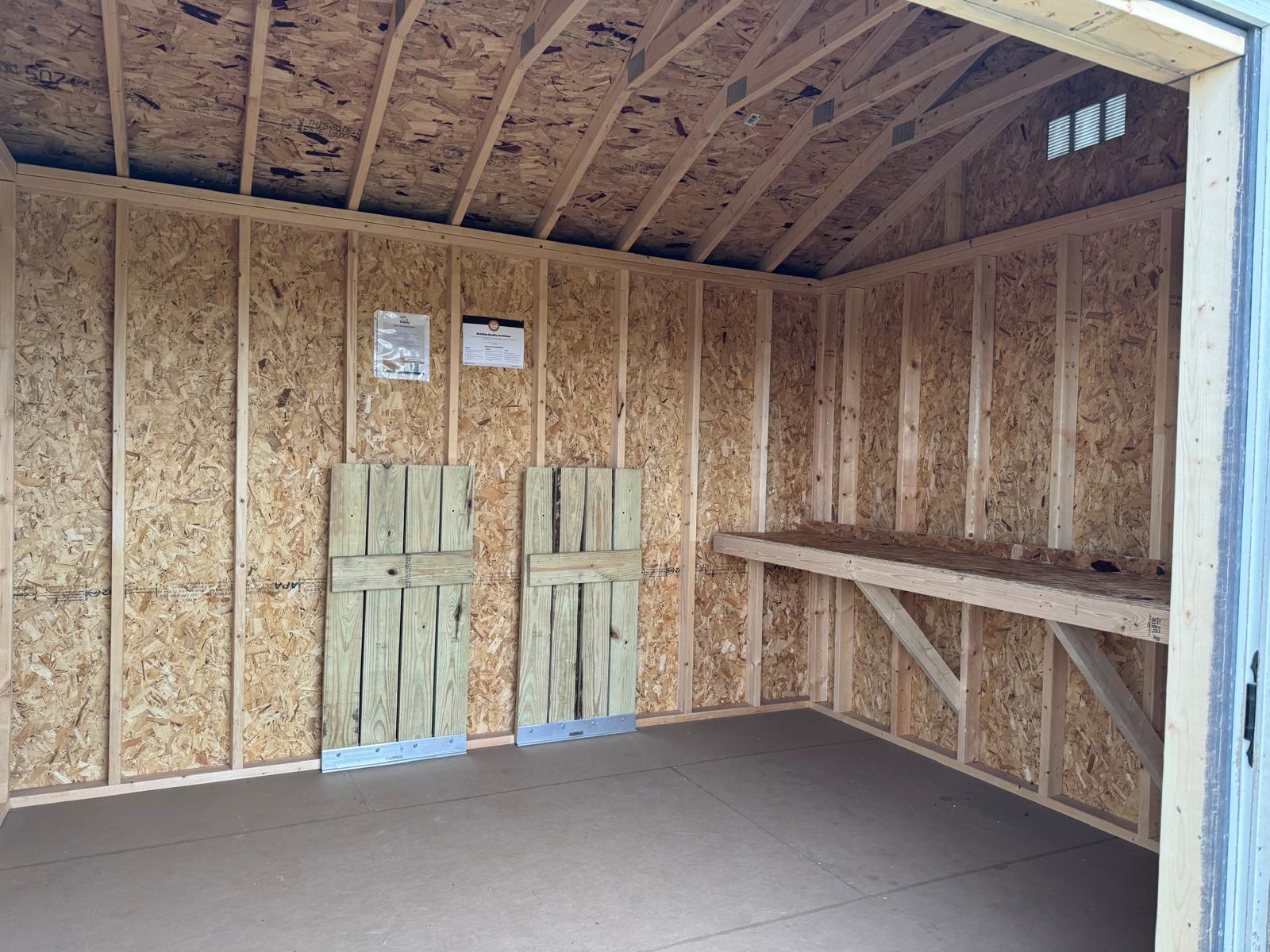 10X12 Everyday Backyard Shed Package With Wood Panel Siding ** Roofline - 5/12 Ranch Gable**Building Color - Peppercorn (SW 7674) Super PaintTrim Color - *FASCIA, CORNER, WINDOW & DOOR TRIM* - Super White (SW 6995)Drip Edge - WhiteVents - 8x16 Vent - WhiteShingles - CertainTeed (Granite Gray) (NorthGate) 1. Window - 18x27 Vertical Slider - WhiteFloors - 16" On CenterFloor Sheeting - 3/4" LP Prostruct Flooring w/ Textured Skid-Resistant Flooring Standard Door - 64in Double Wood Door 1. 4ft IMR Adjustable Pressure Treated Wooden Ramp For Double Door (2 - 2ft X 4ft Sections)
