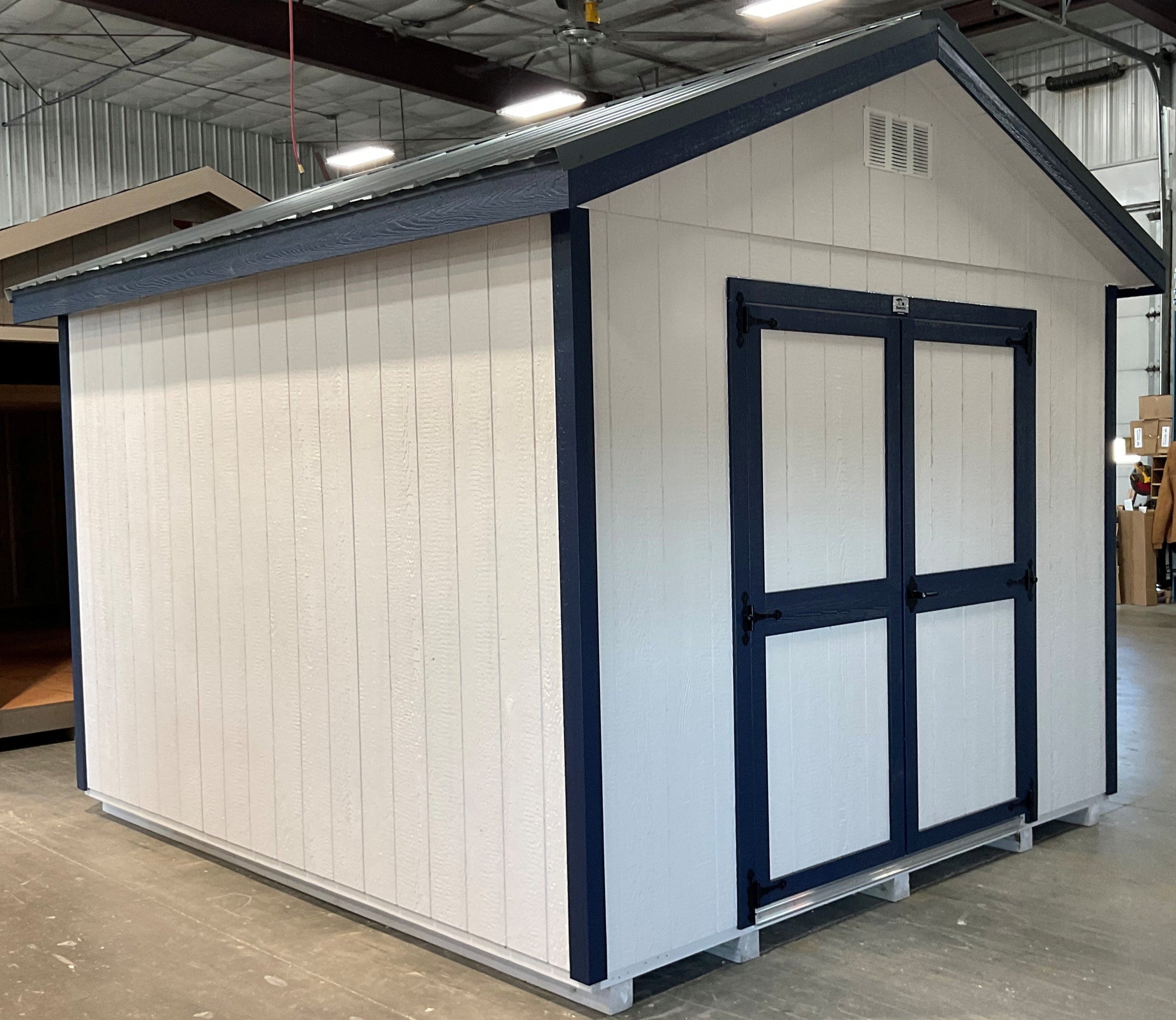 ~ 10X12 Everyday Backyard Shed Package With Wood Panel Siding ** Roofline - 5/12 Ranch Gable** ~ Building Color - Popular Gray (SW6071) Super Paint ~ Trim Color - *FASCIA, CORNER, WINDOW & DOOR TRIM* - Naval (SW6244) ~ Steel Roof - Charcoal LC