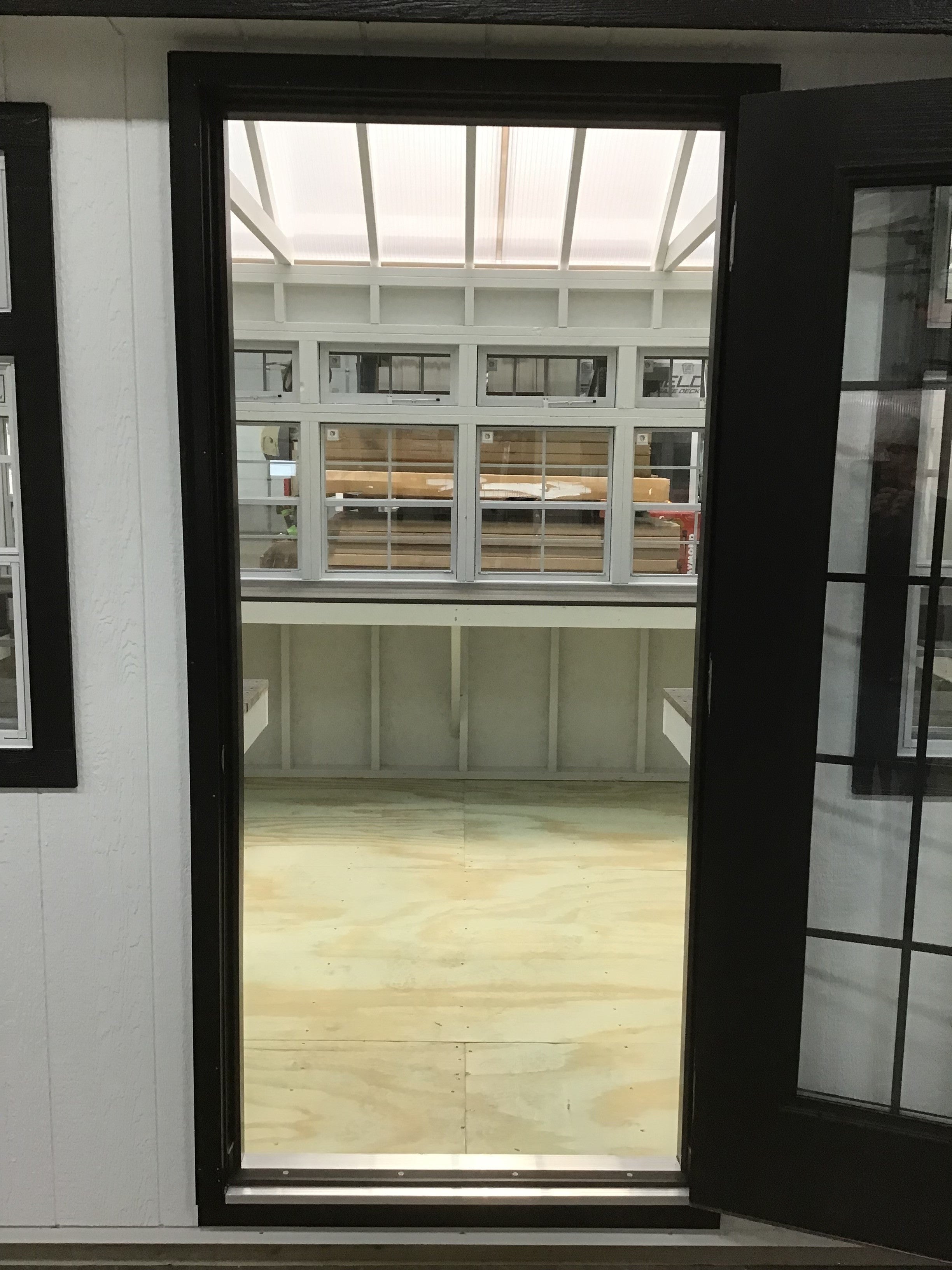 ~ 10X16 Green House Wrap Around With Wood Panel Siding ** Roofline - 7/12 Classic Gable** ~ Building Color - Super White (SW 6995) ~ Trim Color - *FASCIA, CORNER, WINDOW & DOOR TRIM* - Tricorn Black (SW6258) Super Paint ~ Inside of Greenhouse Will be Painted White. ~ 5/8in Thick Softlite Twinwall Polycarbonate Panels; Roof Trim Color - Black