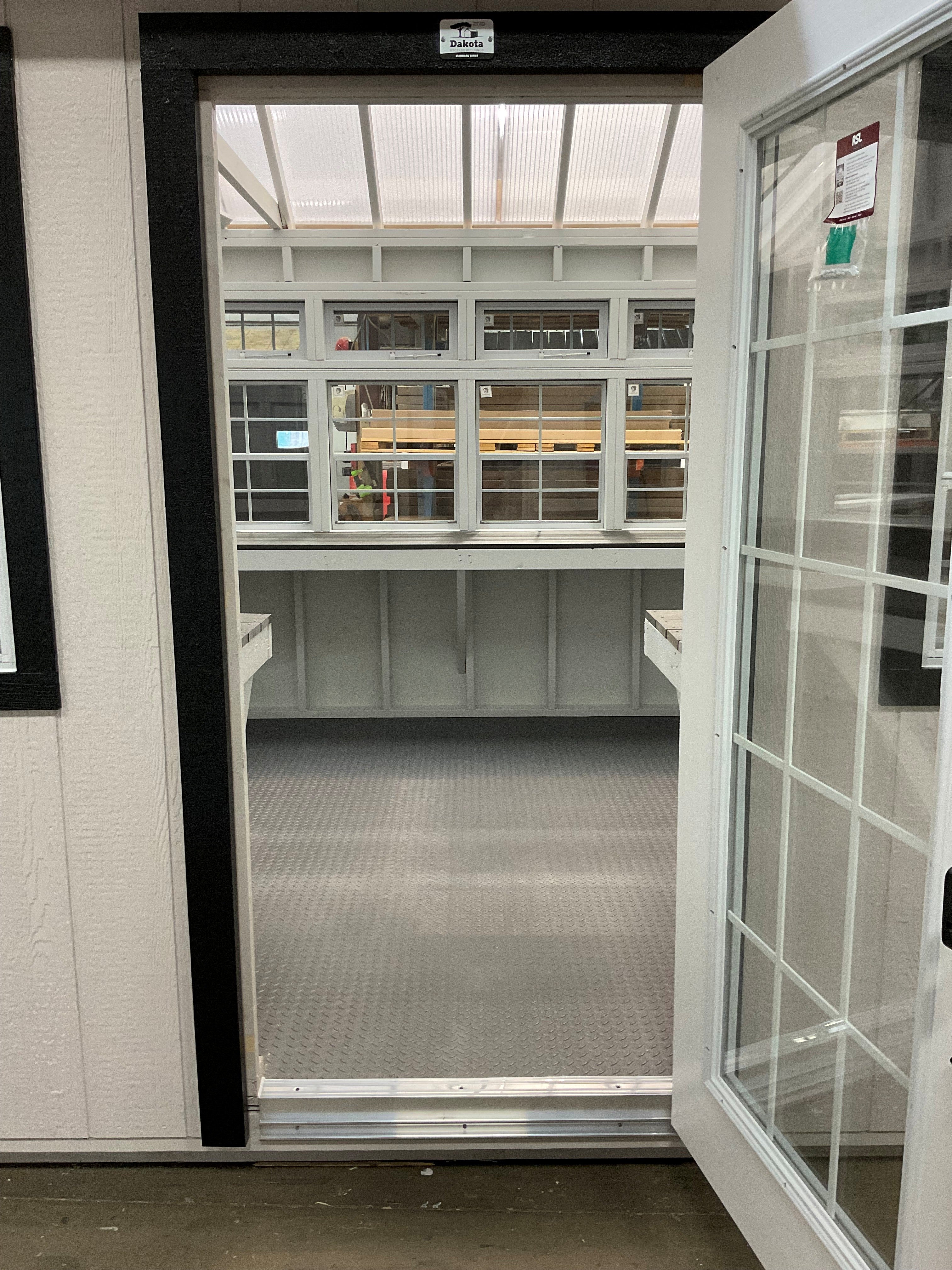 ~ 10X16 Green House Wrap Around With Wood Panel Siding ** Roofline - 7/12 Classic Gable** ~ Building Color - Popular Gray (SW6071) Super Paint ~ Trim Color - *FASCIA, CORNER, WINDOW & DOOR TRIM* - Tricorn Black (SW6258) Super Paint ~ Inside of Greenhouse Will be Painted White. ~ 5/8in Thick Softlite Twinwall Polycarbonate Panels; Roof Trim Color - Black