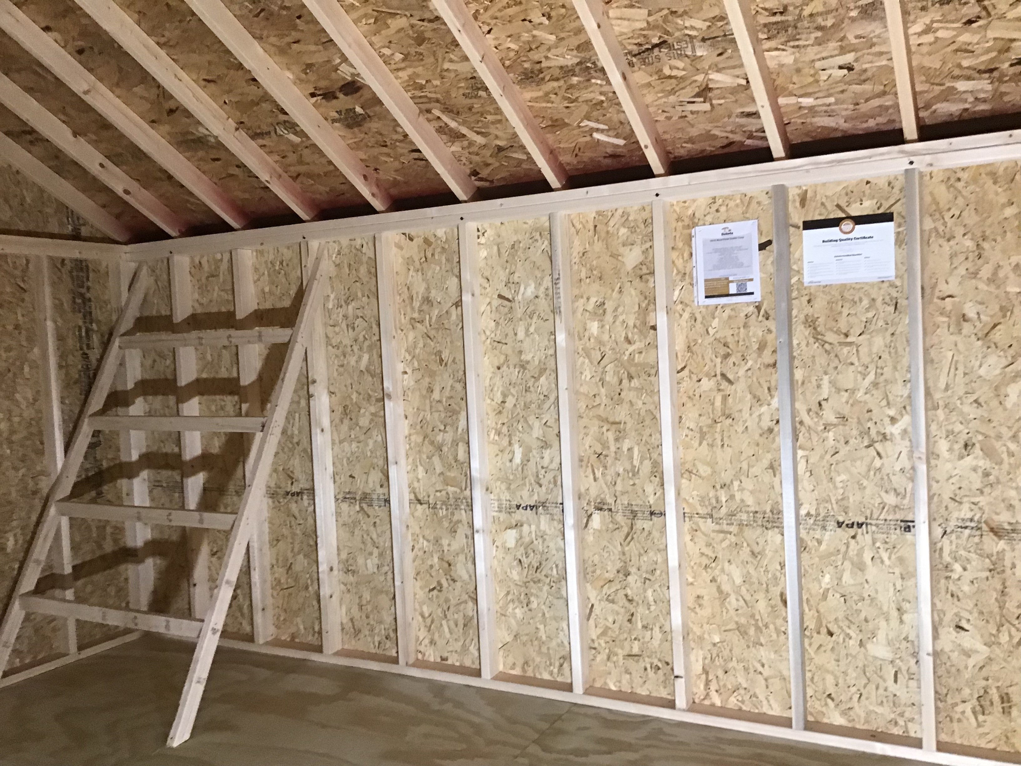 ~ 10X16 With Wood Panel Siding ** Roofline - Quaker Gable** ~ Building Color - Crabby Apple (SW 7592) Super Paint ~ Trim Color - *FASCIA, CORNER, WINDOW & DOOR TRIM* - Super White (SW 6995) ~ Steel Roof - Pure White LC