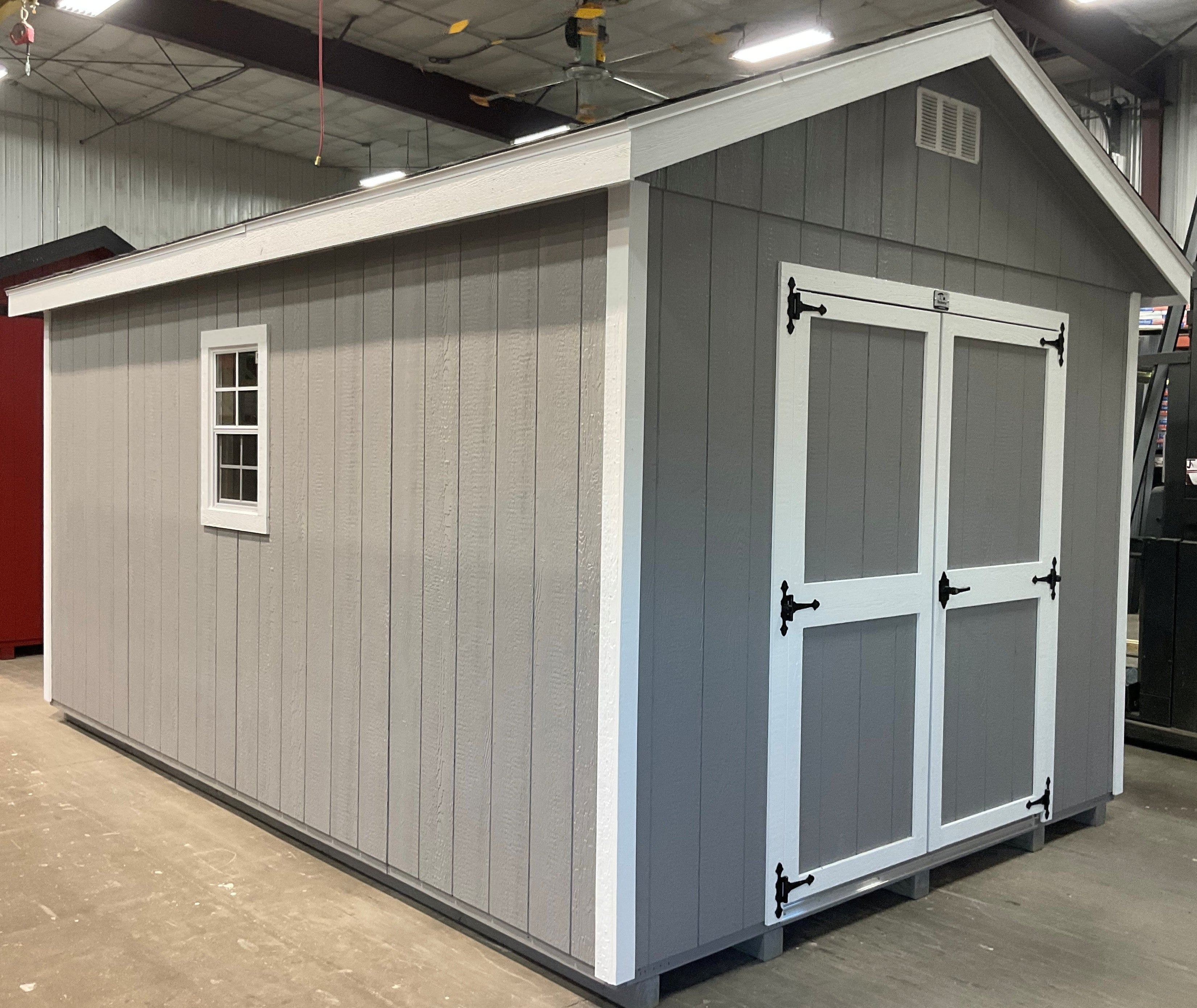 ~ 10X16 Everyday Backyard Shed Package With Wood Panel Siding ** Roofline - 5/12 Ranch Gable** ~ Building Color - Summit Gray (SW 7669) ~ Trim Color - *FASCIA, CORNER, WINDOW & DOOR TRIM* - Super White (SW 6995) ~ Shingles - CertainTeed (Granite Gray) (NorthGate) ~ Drip Edge - White