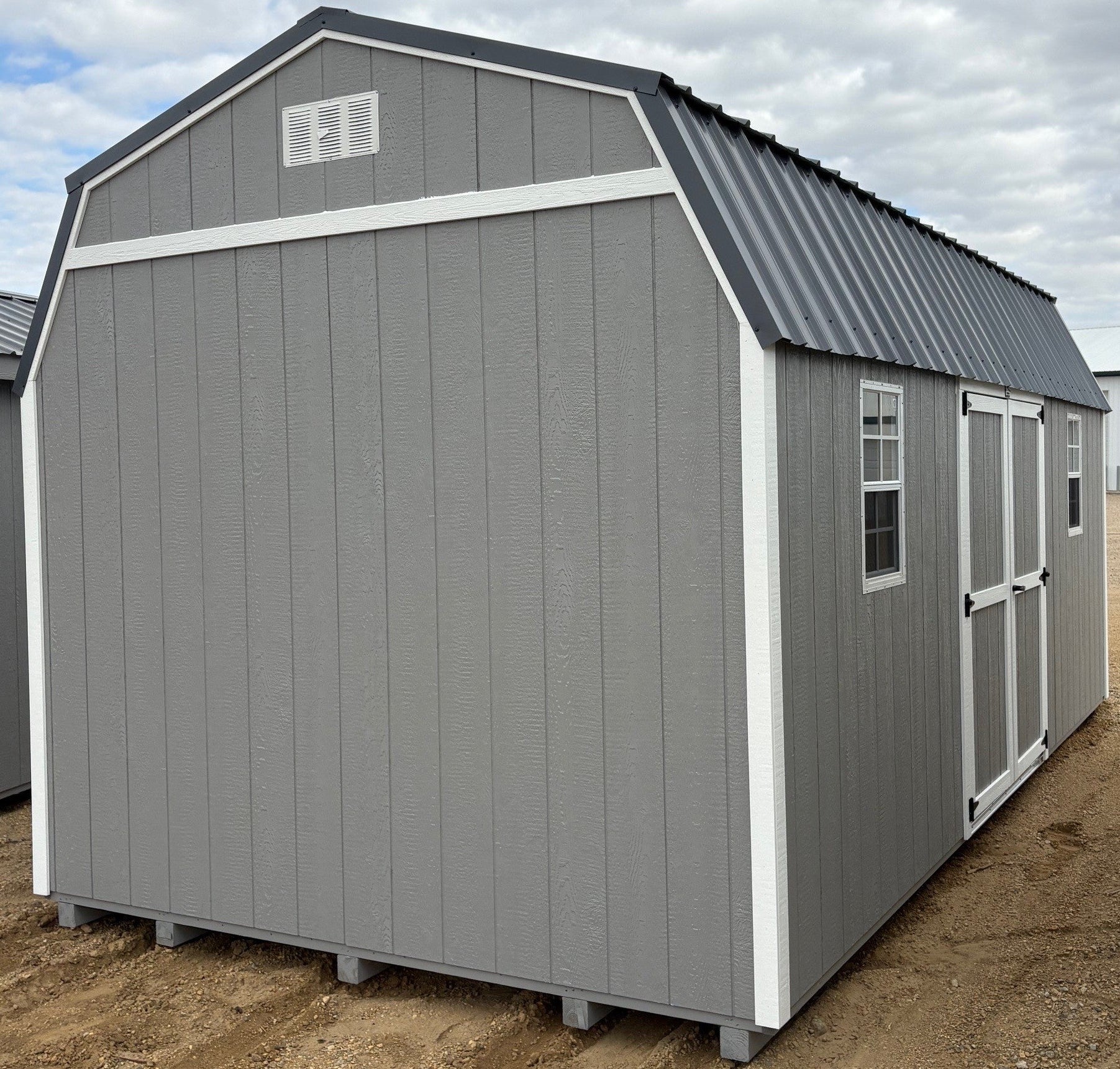 ~ 10X20 Utility High Barn Wood Panel Shed ~ Building Color - Summit Gray (SW 7669) ~ Trim Color - *FASCIA, CORNER, & DOOR TRIM* - Super White (SW 6995) ~ Steel Roof - Charcoal LC
