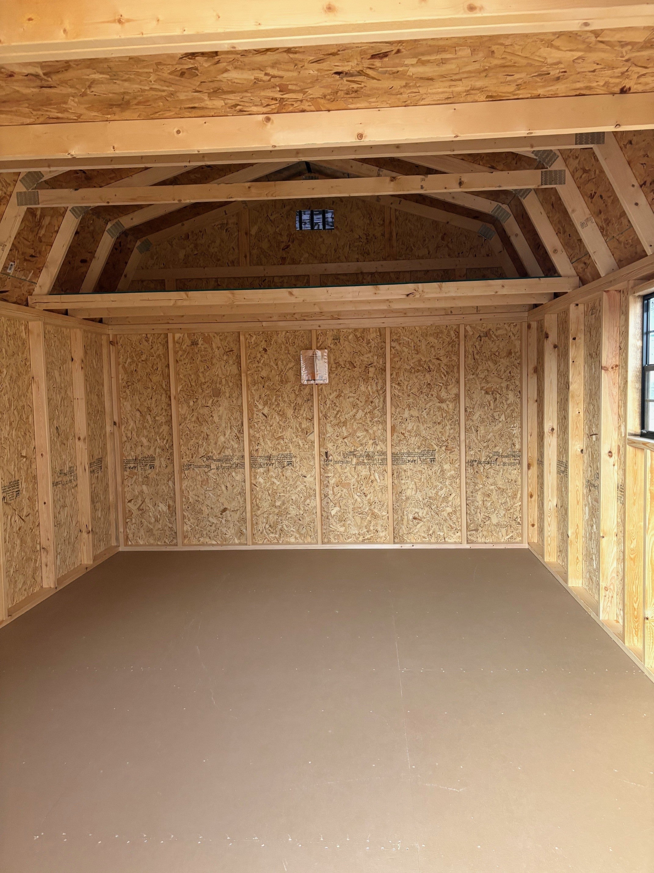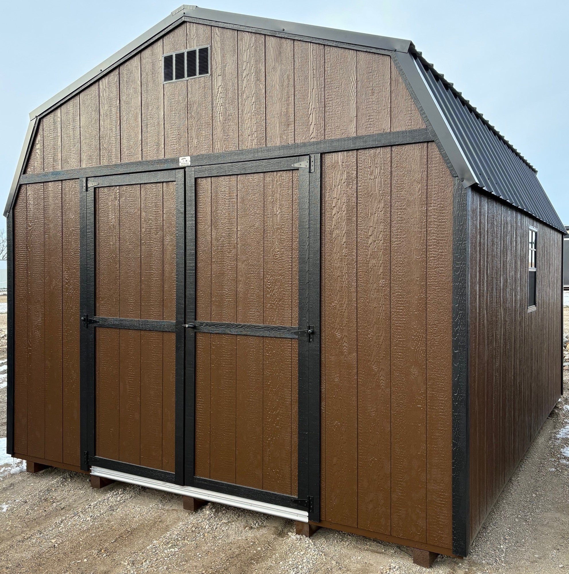 ~ 12X16 Utility High Barn Wood Panel Shed ~ Building Color - French Roast (SW 6069) ~ Trim Color - *FASCIA, CORNER, & DOOR TRIM* - Tricorn Black (SW6258) Super Paint ~ Steel Roof - Black LC