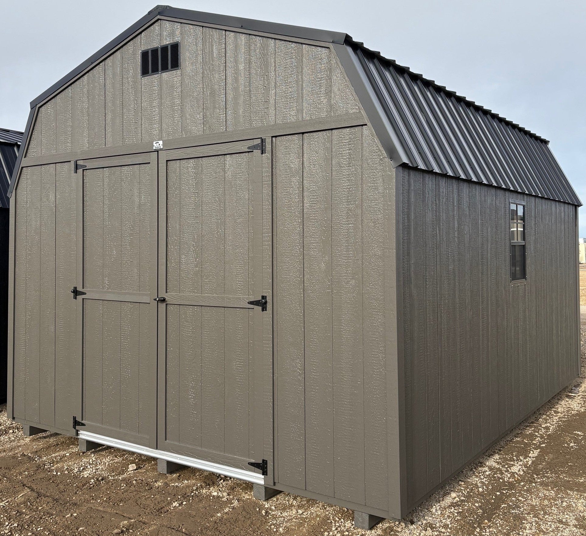 ~ 12X16 Utility High Barn Wood Panel Shed~ Building Color - Urbane Bronze (SW 7048)~ Steel Roof - Black LC