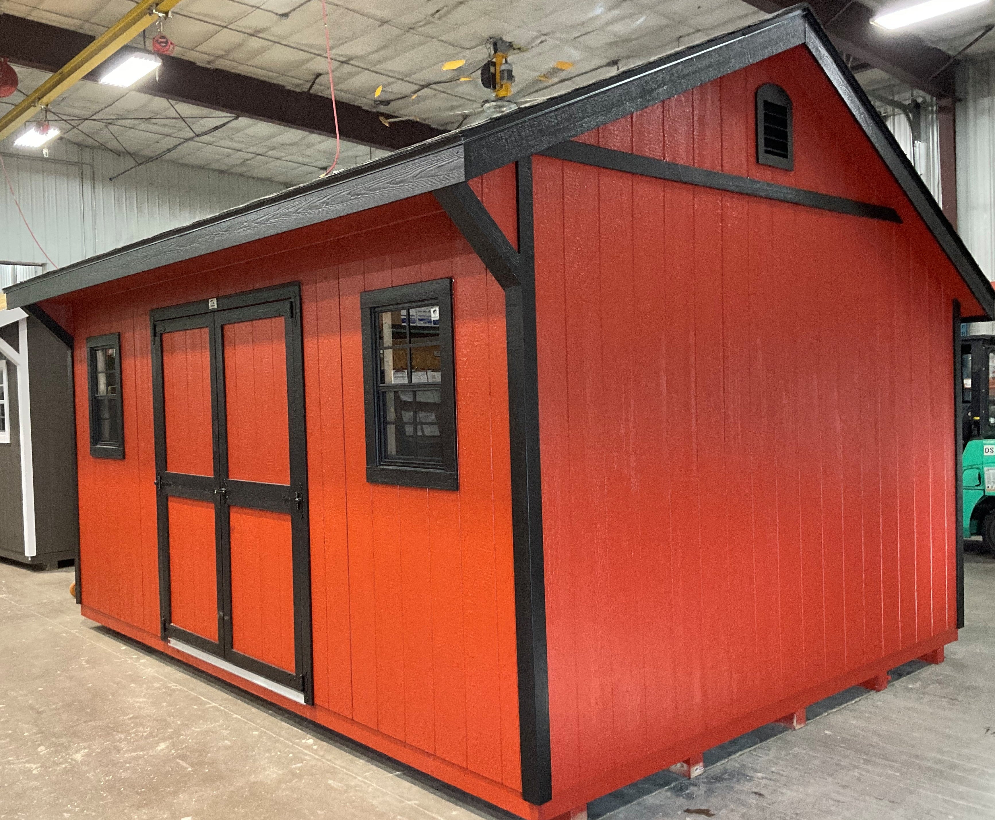 ~ 12X16 Everyday Backyard Shed Package With Wood Panel Siding ** Roofline - Quaker Gable** ~ Building Color - Fired Brick (SW6335) Super Paint ~ Trim Color - *FASCIA, CORNER, WINDOW & DOOR TRIM* - Tricorn Black (SW6258) Super Paint ~ Shingles - CertainTeed (Black) (NorthGate) ~ Drip Edge - Black
