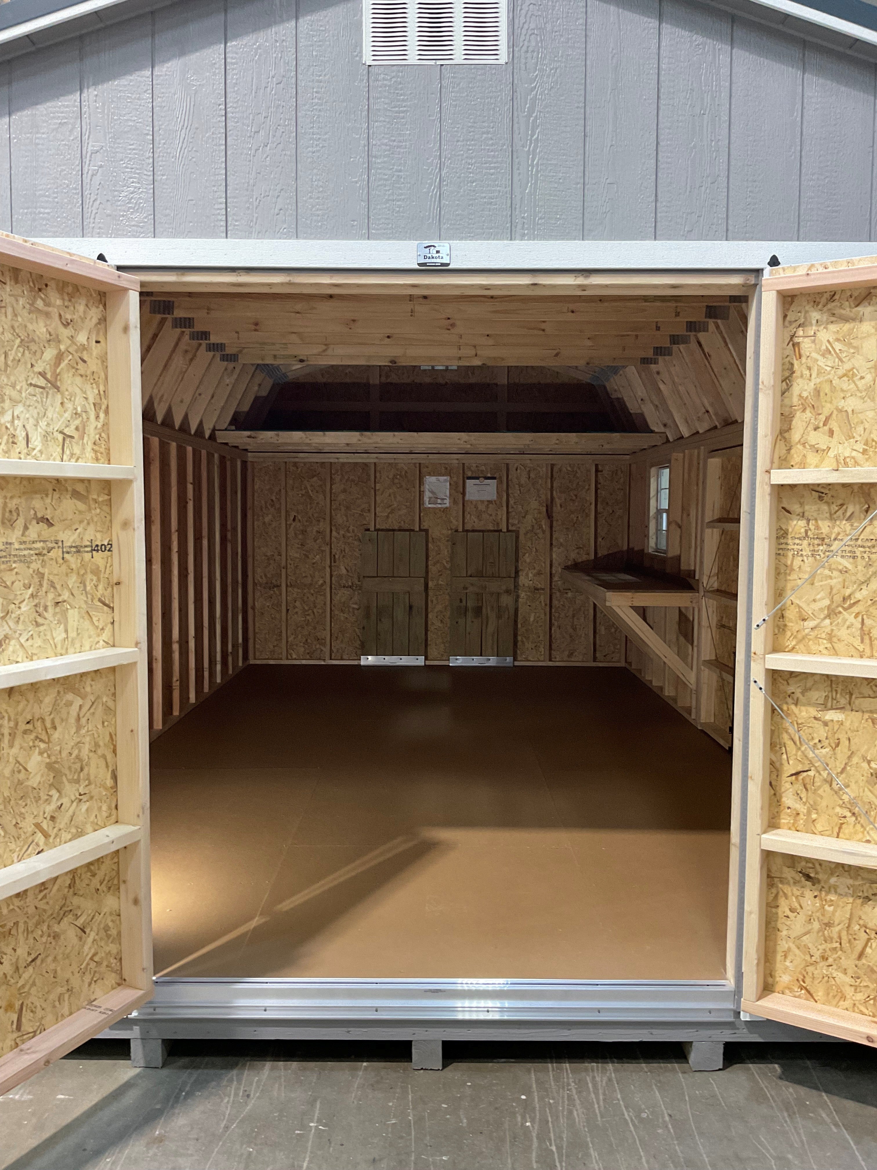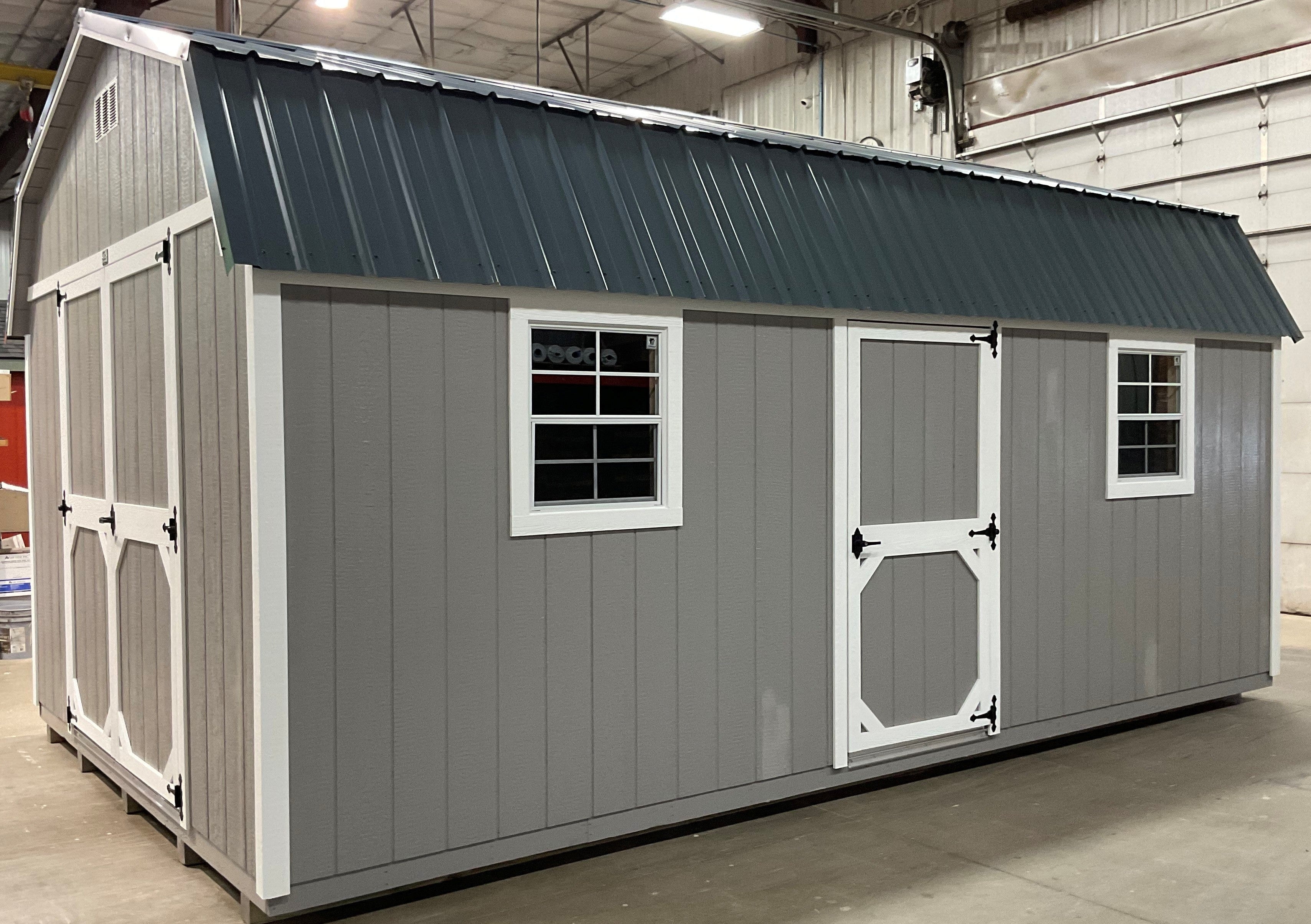 ~ 12X20 Everyday Backyard Shed Package XL With Wood Panel Siding ** Roofline - High Barn** ~ Building Color - Summit Gray (SW 7669) ~ Trim Color - *FASCIA, CORNER, WINDOW & DOOR TRIM* - Super White (SW 6995) ~ Steel Roof - Charcoal LC ~ Gable Overhang