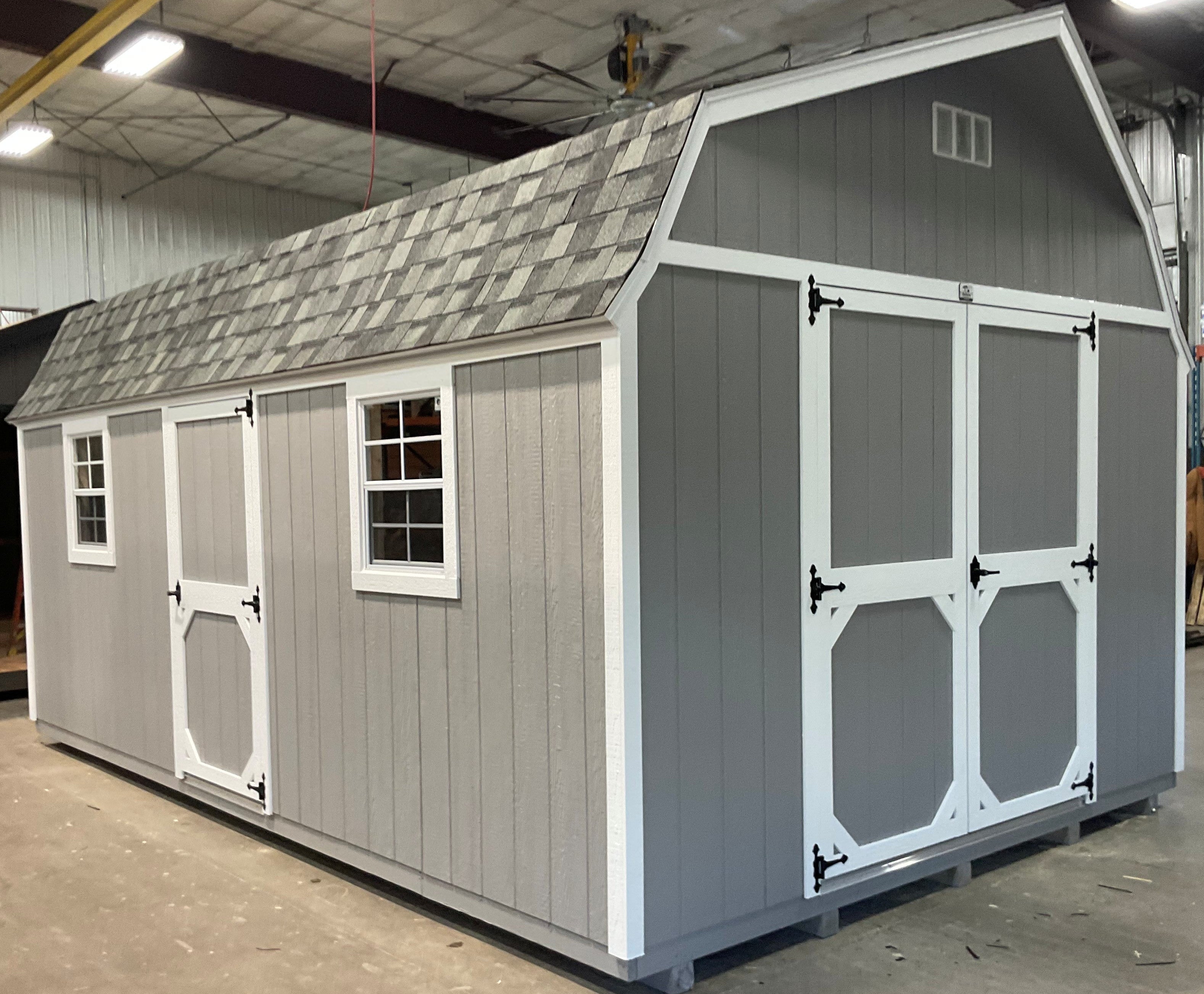 ~ 12X20 High Barn Wood Style Shed ~ Building Color - Summit Gray (SW 7669) ~ Trim Color - *FASCIA, CORNER, WINDOW & DOOR TRIM* - Super White (SW 6995) ~ Shingles - CertainTeed (Granite Gray) (NorthGate) ~ Drip Edge - White