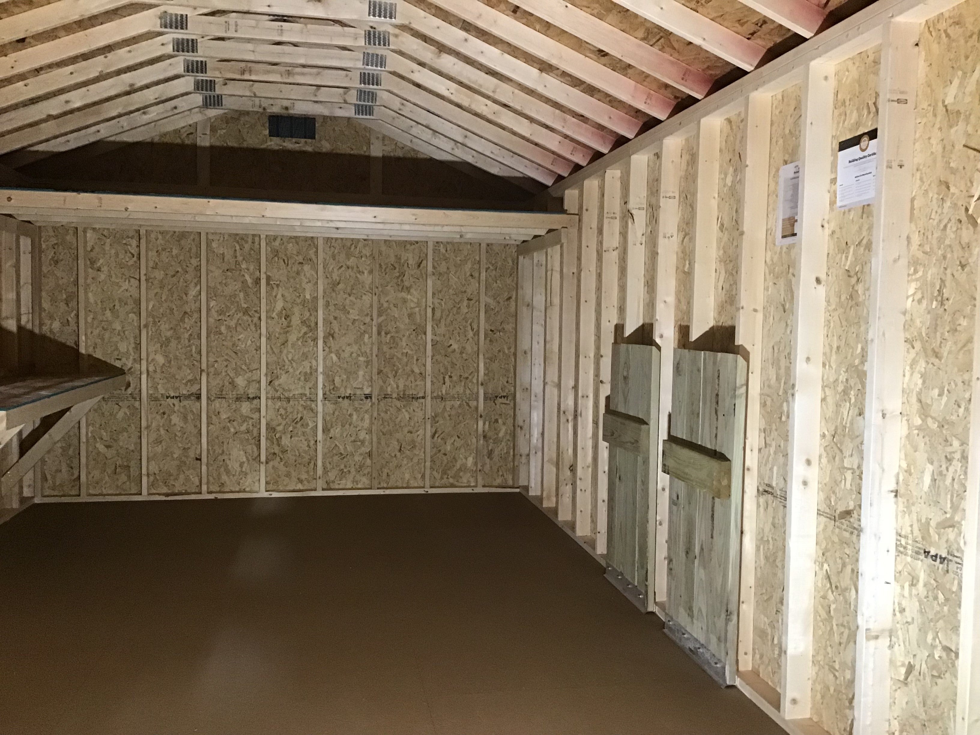 12X20 Everyday Backyard Shed Package XL With Wood Panel Siding ** Roofline - 5/12 Ranch Gable** Building Color - Crabby Apple (SW 7592) Super Paint Trim Color - *FASCIA, CORNER, WINDOW & DOOR TRIM* - Tricorn Black (SW6258) Super Paint Vents - 8x16 Vent - Black Steel Roof - Black LC 1. Window - 24x27 Vertical Slider - Black 1 Extra Window- 24x27 Vertical Slider - Black Floors - 16" On Center Floor Sheeting - 3/4" LP Prostruct Flooring w/ Textured Skid-Resistant Flooring Standard Door - 72in Double Wood Door 1. Extra 36in Single Wood Door 1. 2X8 Workbench 1. 4x12 Loft 1. 4ft IMR Adjustable Pressure Treated Wooden Ramp For Double Door (2 - 2ft X 4ft Sections)