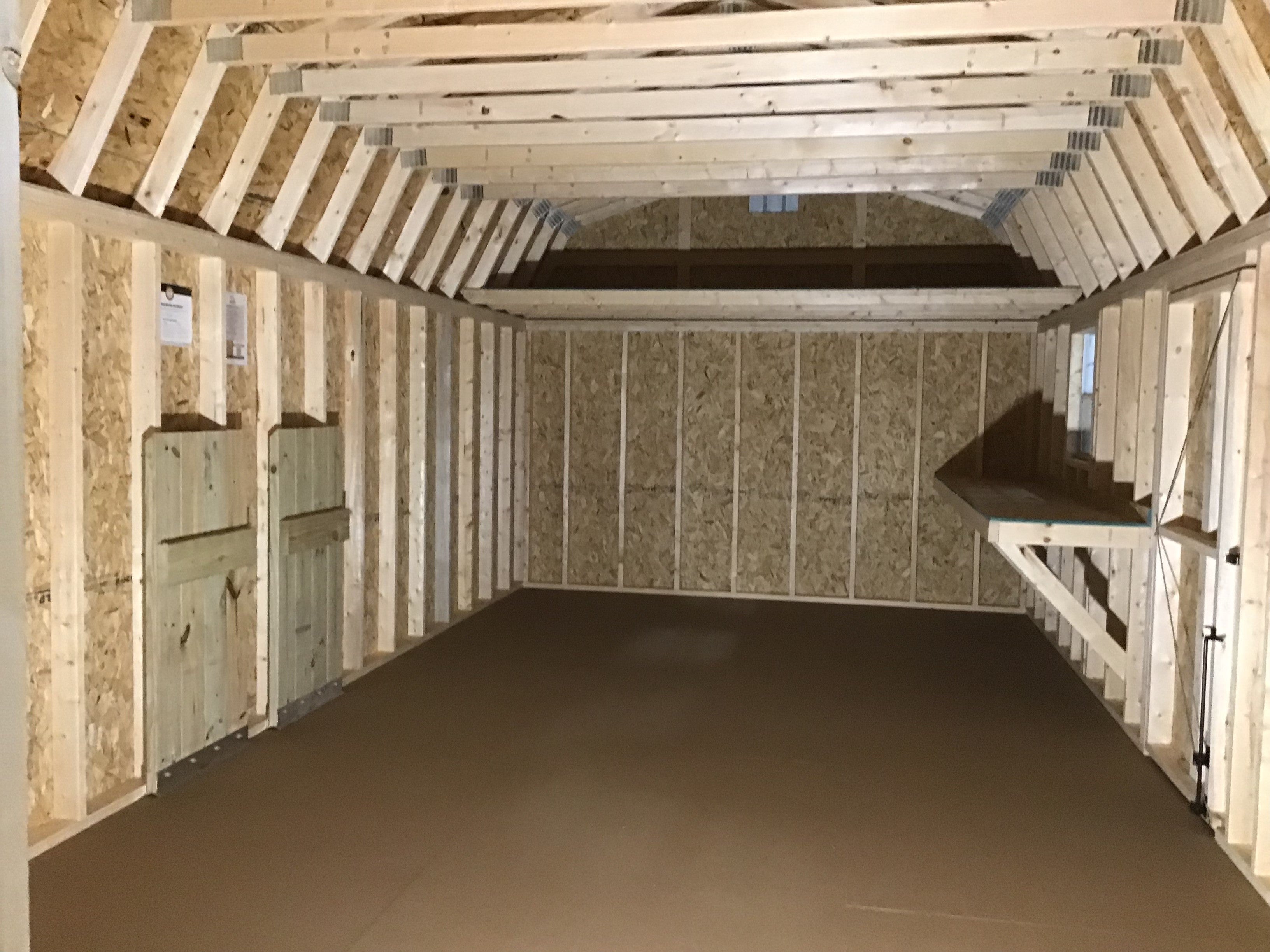 12X24 Everyday Backyard Shed Package XL With Wood Panel Siding ** Roofline - High Barn** Building Color - Evergreen Fog (SW9130) Super Paint Trim Color - *FASCIA, CORNER, WINDOW & DOOR TRIM* - Super White (SW 6995) Drip Edge - White Vents - 8x16 Vent - White Shingles - CertainTeed (Weatherwood) (NorthGate) 1. Window - 24x27 Vertical Slider - White 1 Extra Window- 24x27 Vertical Slider - White Floors - 16" On Center Floor Sheeting - 3/4" LP Prostruct Flooring w/ Textured Skid-Resistant Flooring Standard Door - 72in Double Wood Door 1. Extra 36in Single Wood Door 1. 2X10 Workbench 1. 4x12 Loft 1. 4ft IMR Adjustable Pressure Treated Wooden Ramp For Double Door (2 - 2ft X 4ft Sections)