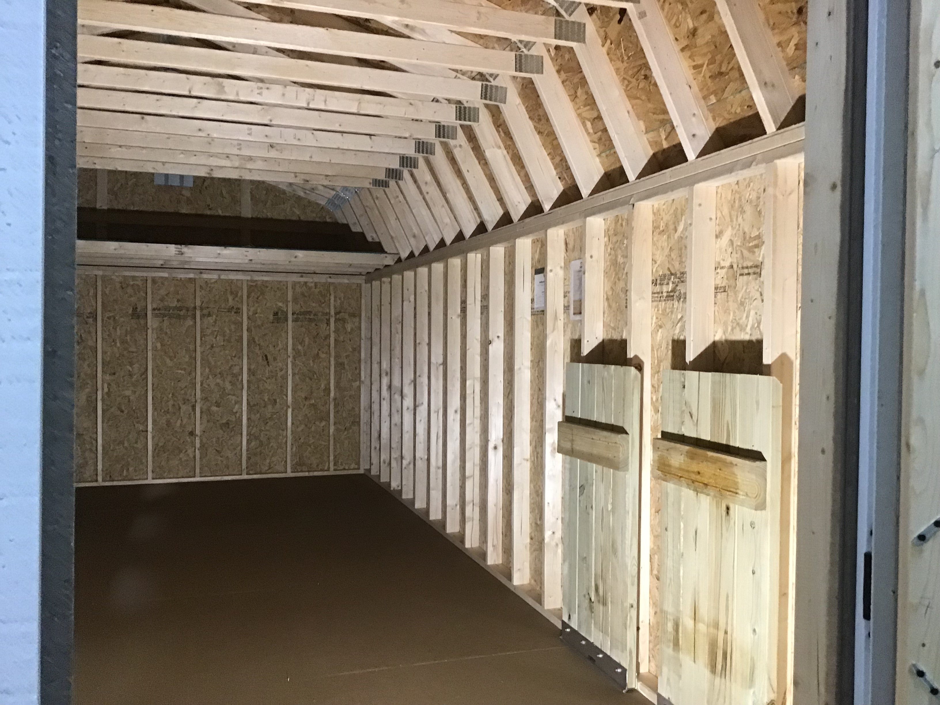 12X24 Everyday Backyard Shed Package XL With Wood Panel Siding ** Roofline - High Barn** ~ Building Color - Backdrop (SW7025) ~ Trim Color - *FASCIA, CORNER, WINDOW & DOOR TRIM* - Super White (SW 6995) ~ Steel Roof - Burnished Slate LC ~ Gable Overhang