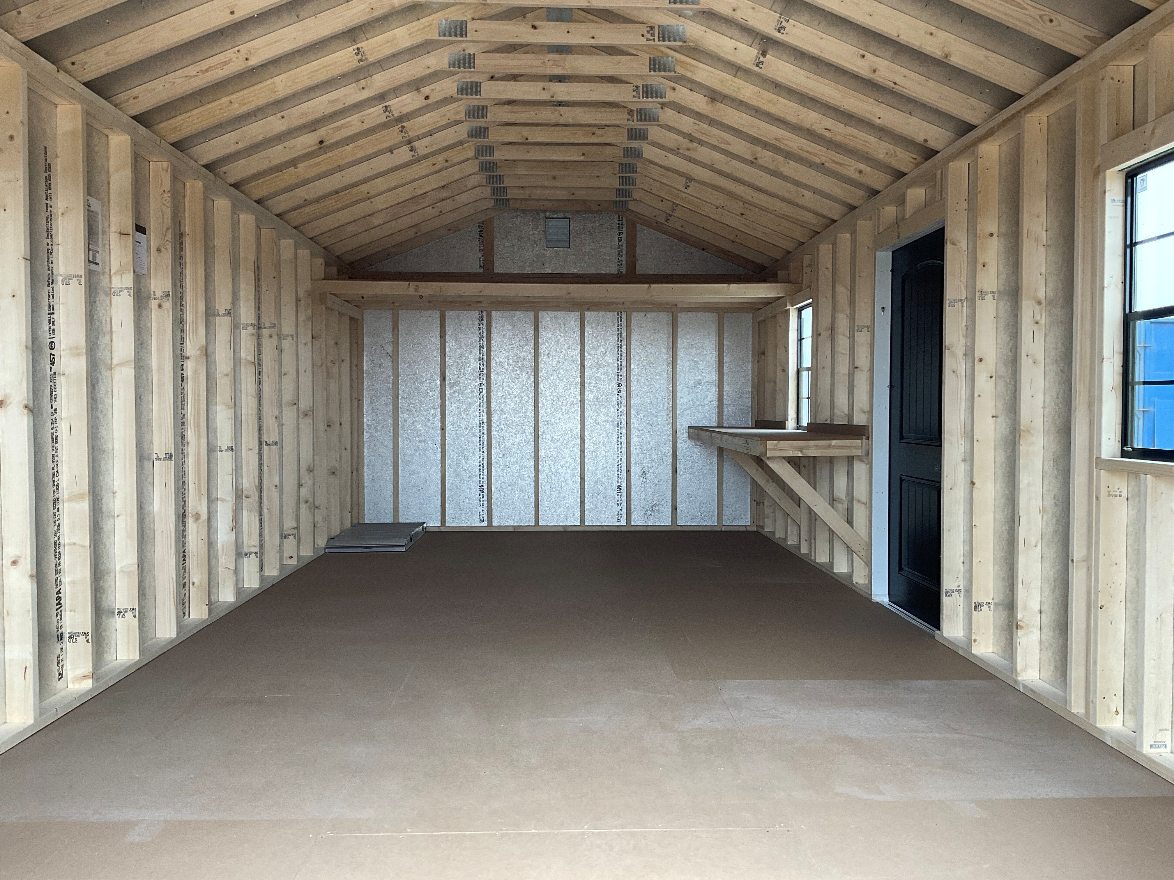 *FLOORING & INTERIOR* ~ Floors - 16" On Center With 2x6 Pressure Treated Floor Joist ~ Floor Sheeting - 3/4" LP Prostruct Flooring w/ Textured Skid-Resistant Flooring ~ ***LP ProStruct With SILVERTECH Finish on Roof*** ~ Build Out of LP SmartSide Panel Siding With SILVERTECH ~ 1. 2X10 Workbench - With a 3/4" Prostruct Top ~ 1. 4x12 Loft