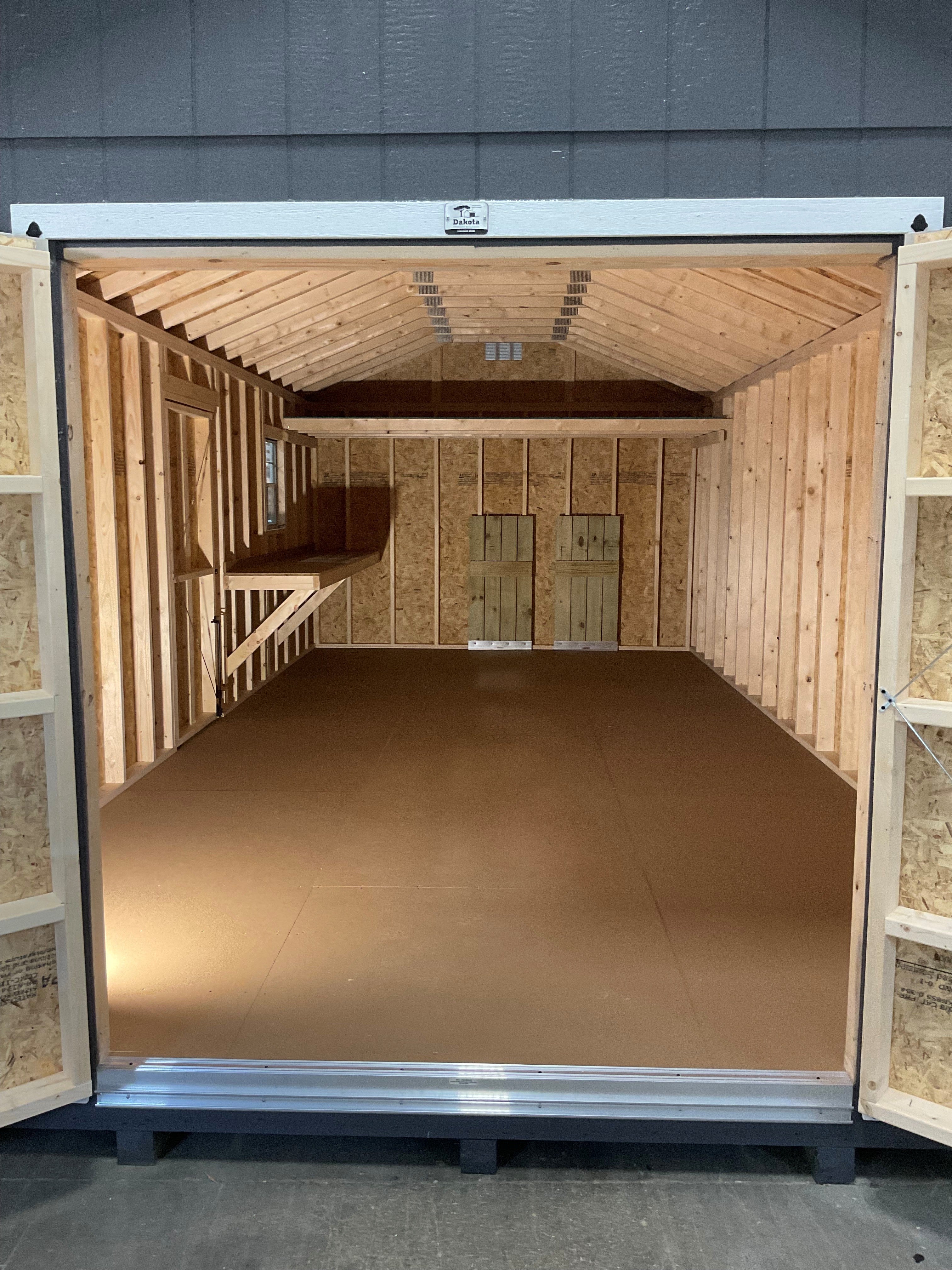 ~ 12X24 Everyday Backyard Shed Package XL With Wood Panel Siding ** Roofline - 5/12 Ranch Gable** ~ Building Color - Peppercorn (SW 7674) Super Paint ~ Trim Color - *FASCIA, CORNER, WINDOW & DOOR TRIM* - Super White (SW 6995) ~ Steel Roof - Charcoal LC