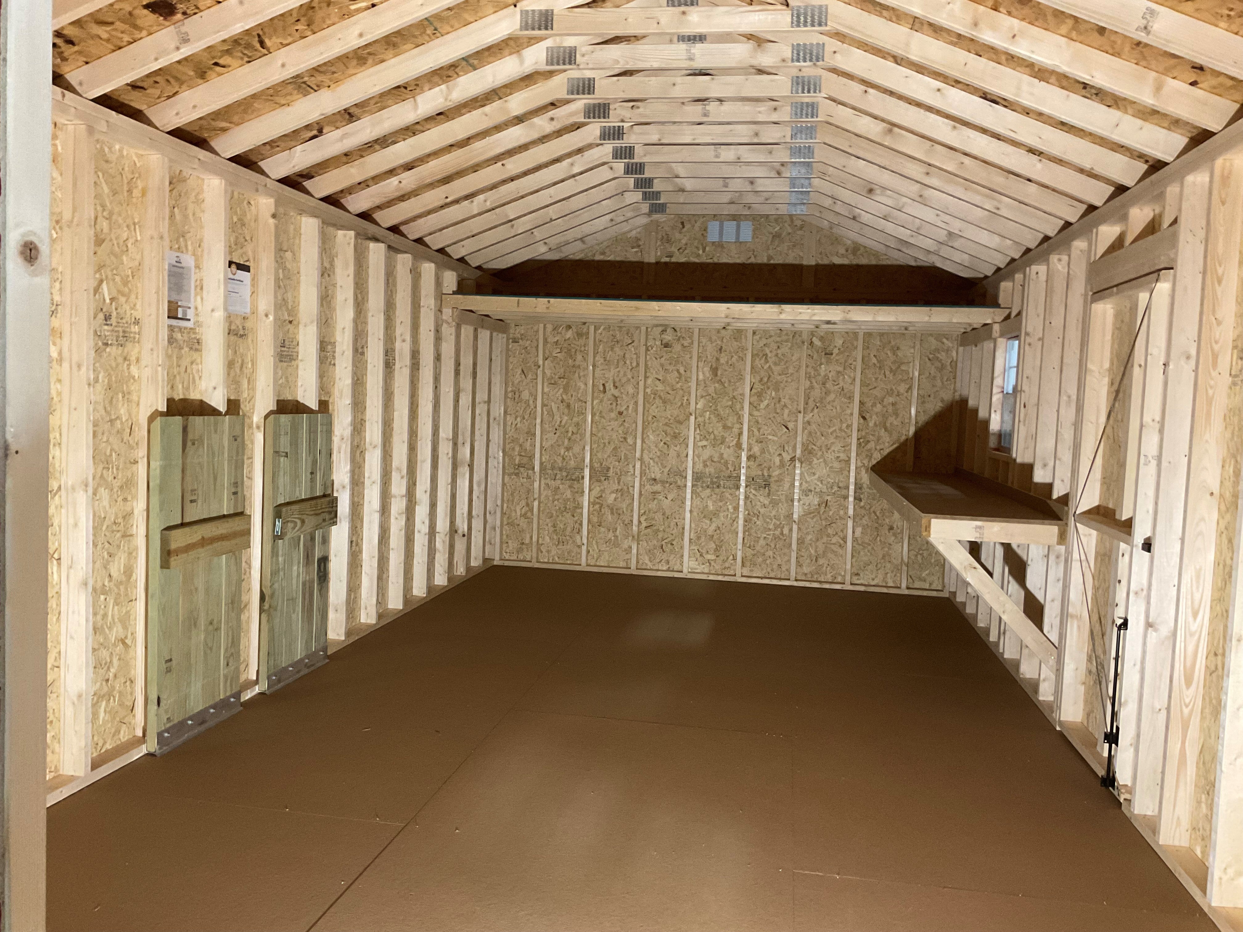 ~ 12X24 Everyday Backyard Shed Package XL With Wood Panel Siding ** Roofline - 5/12 Ranch Gable** ~ Building Color - Crabby Apple (SW 7592) Super Paint ~ Trim Color - *FASCIA, CORNER, WINDOW & DOOR TRIM* - Super White (SW 6995) ~ Shingles - CertainTeed (Black) (NorthGate) ~ Drip Edge - White