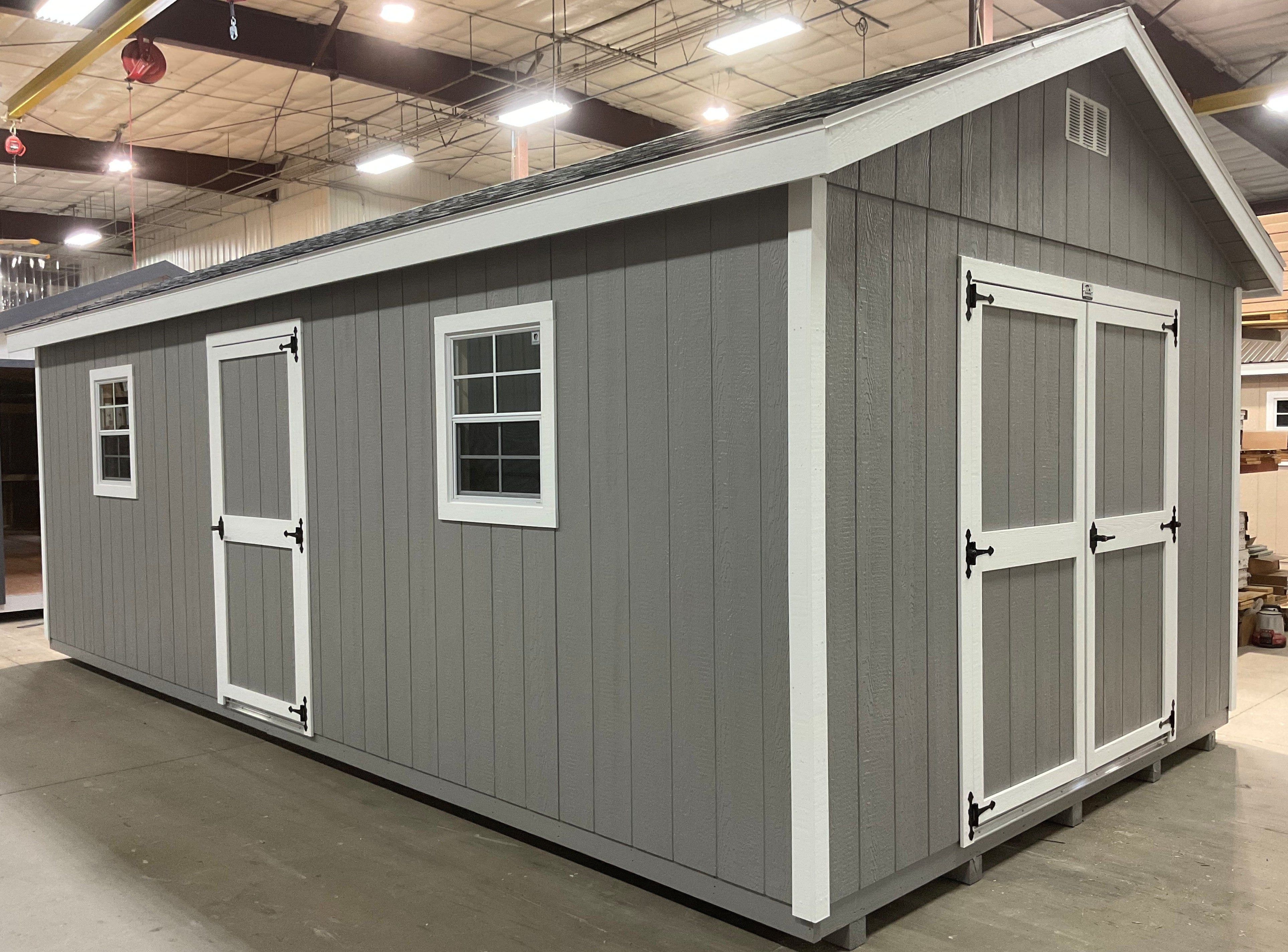 ~ 12X24 Everyday Backyard Shed Package XL With Wood Panel Siding ** Roofline - 5/12 Ranch Gable** ~ Building Color - Summit Gray (SW 7669) ~ Trim Color - *FASCIA, CORNER, WINDOW & DOOR TRIM* - Super White (SW 6995) ~ Shingles - CertainTeed (Granite Gray) (NorthGate) ~ Drip Edge - White