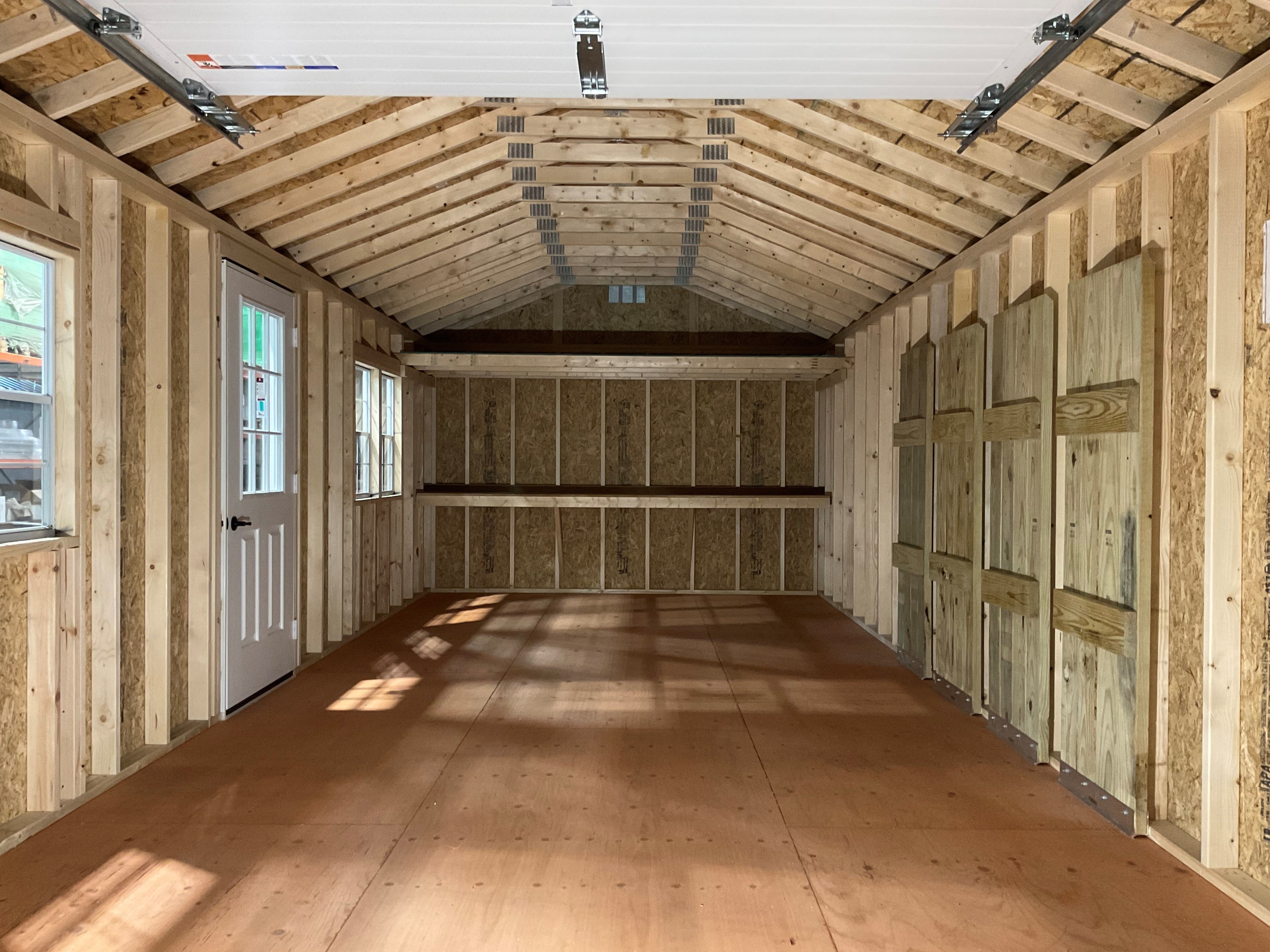 ~ 12X28 Farm Garage Storage Package With Wood Panel Siding ** Roofline - 5/12 Ranch Gable** ~ Building Color - Naval (SW6244) ~ Trim Color - *FASCIA, CORNER, WINDOW & DOOR TRIM* - Super White (SW 6995) ~ Shingles - CertainTeed (Black) (NorthGate) ~ Drip Edge - White
